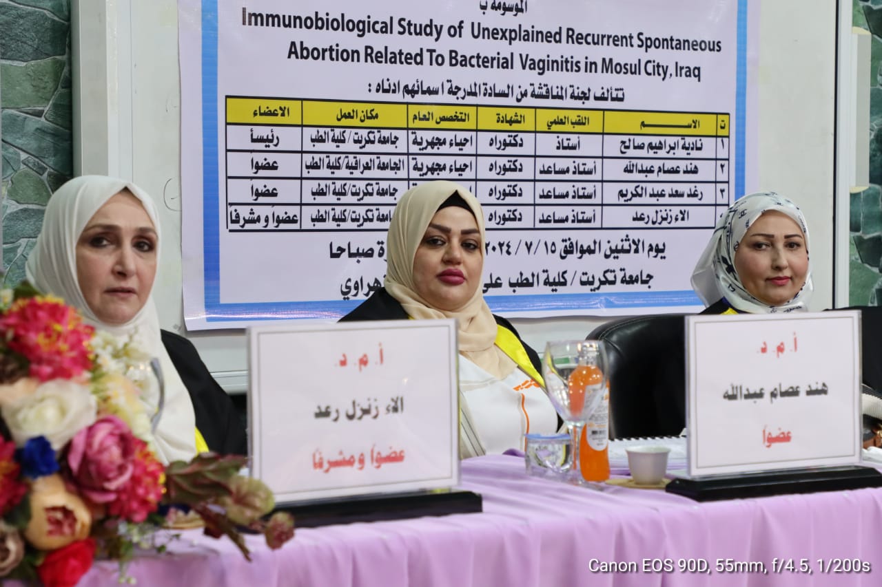نوقش بكلية الطب جامعة تكريت رسالة ماجستير فرع الاحياء المجهرية الطبية والموسومة