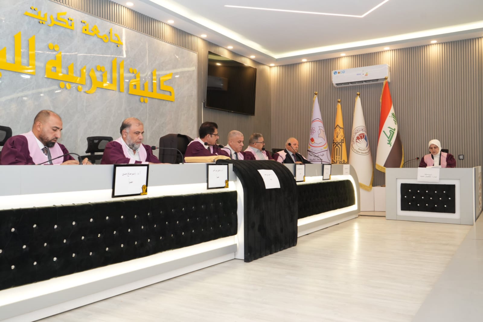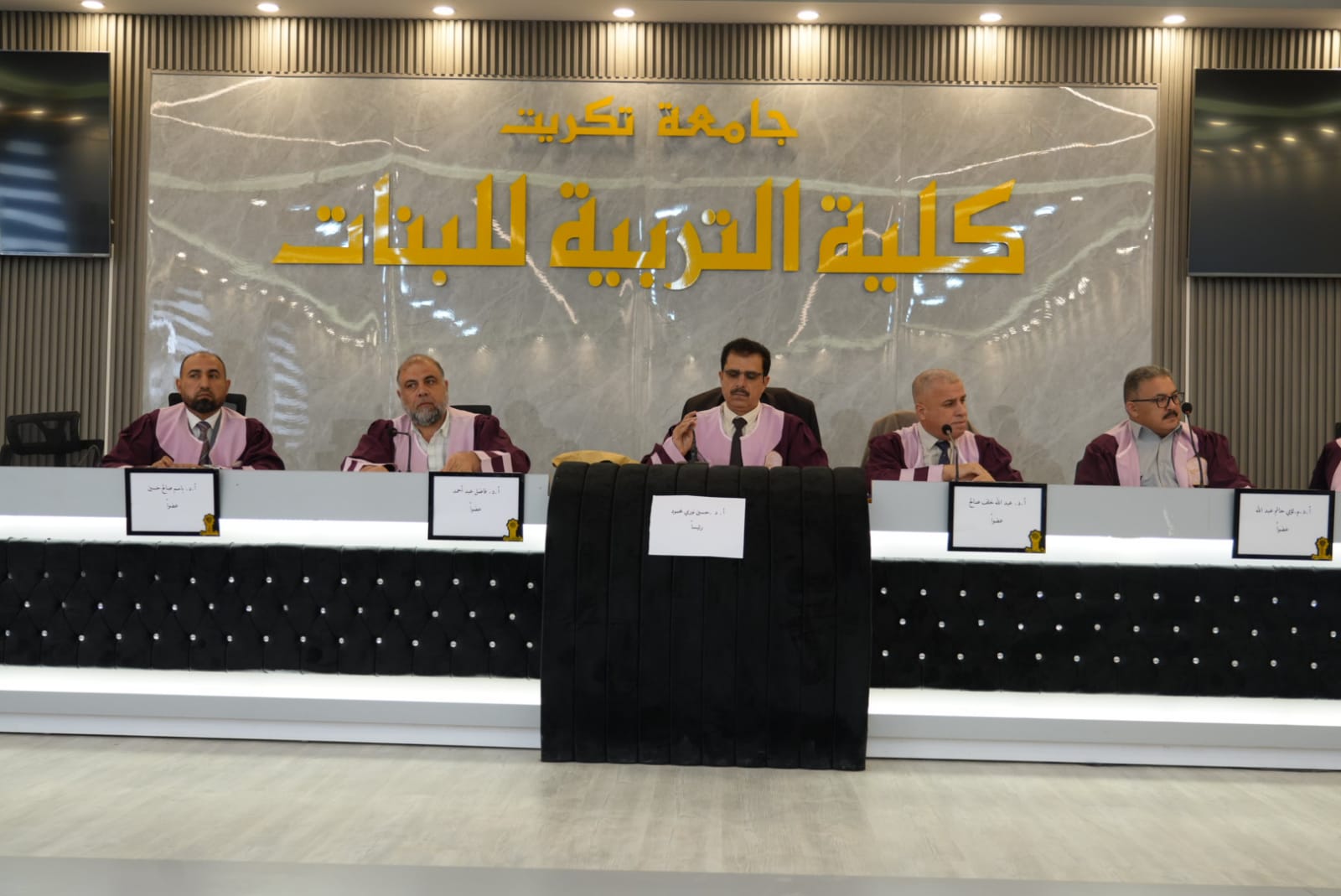 وقد بارك رئيس الجامعة جهود الطالبة المناقشة المبذولة في هذه الاطروحة واشاد بجهود الاستاذ المشرف والاساتذة في لجنة المناقشة واثنى على الدقة العلمية للملاحظات التي طرحتها اللجنة وصوابها وثمن المستوى العلمي الرصين لهذه المناقشات التي تصب هي ومثيلاتها في تحقيق الرصانة العلمية والاكاديمية التي تليق بجامعة تكريت