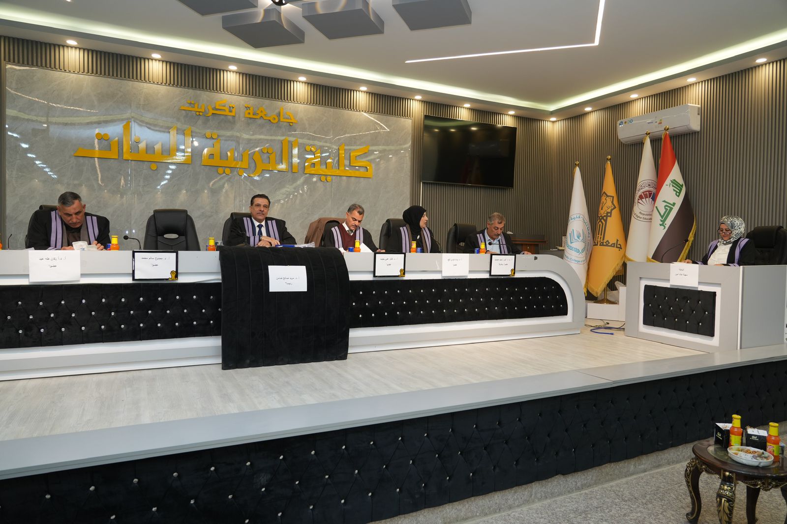في اطار حضوره الفاعل وجولاته المستمرة للاطلاع على سير العمل في كليات واقسام ومفاصل الجامعة حضر الاستاذ الدكتور وعد محمود رؤوف رئيس جامعة تكريت مناقشة اطروحة دكتوراه للطالبة سهيلة خالد امين في كلية التربية للبنات حيث قدم التهاني للطالبة واثنى على جهودها وجهود لجنة المناقشة وابدى سروره بحضوره لمثل هكذا مناقشات تعزز الرصانة العلمية والاكاديمية في الجامعة