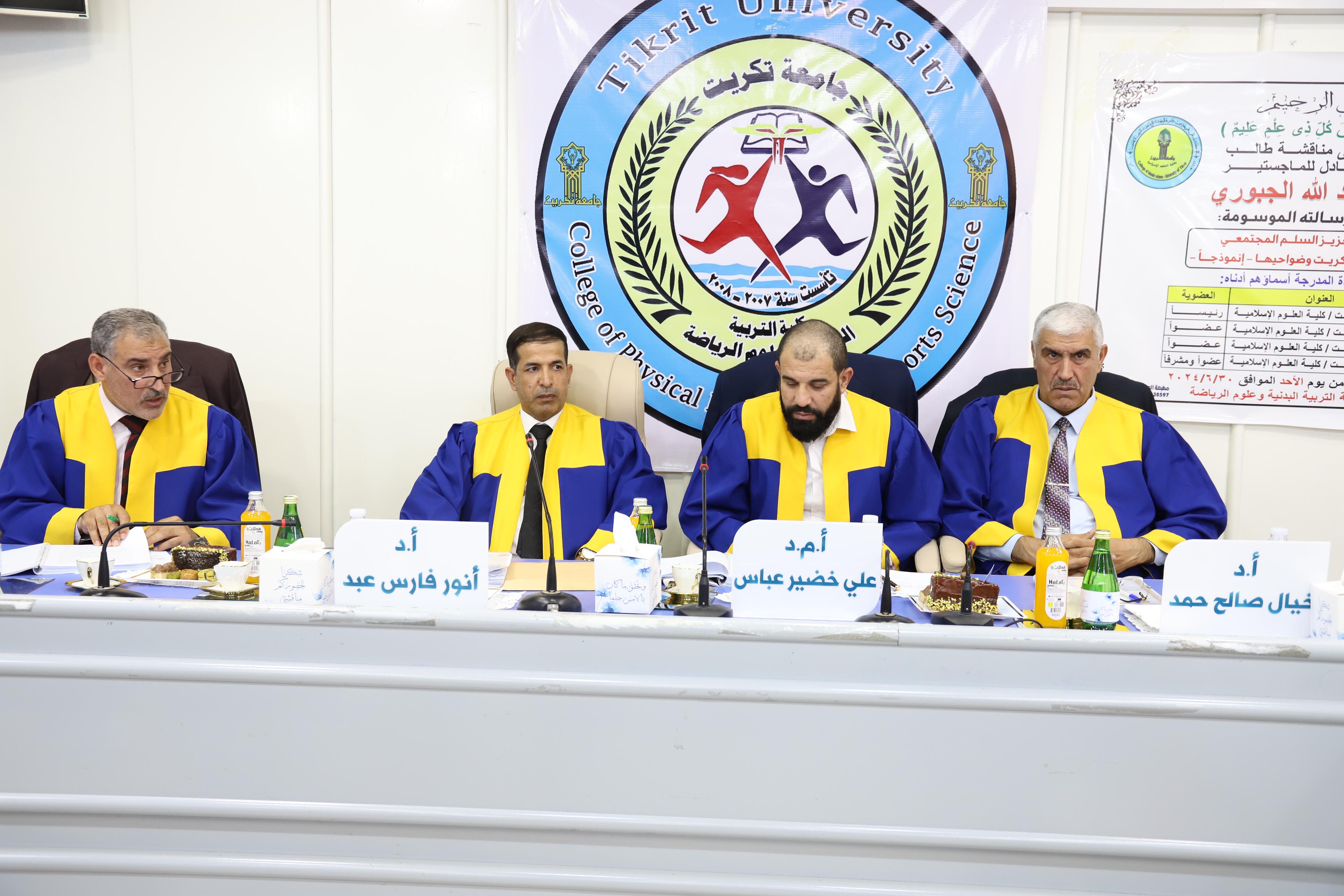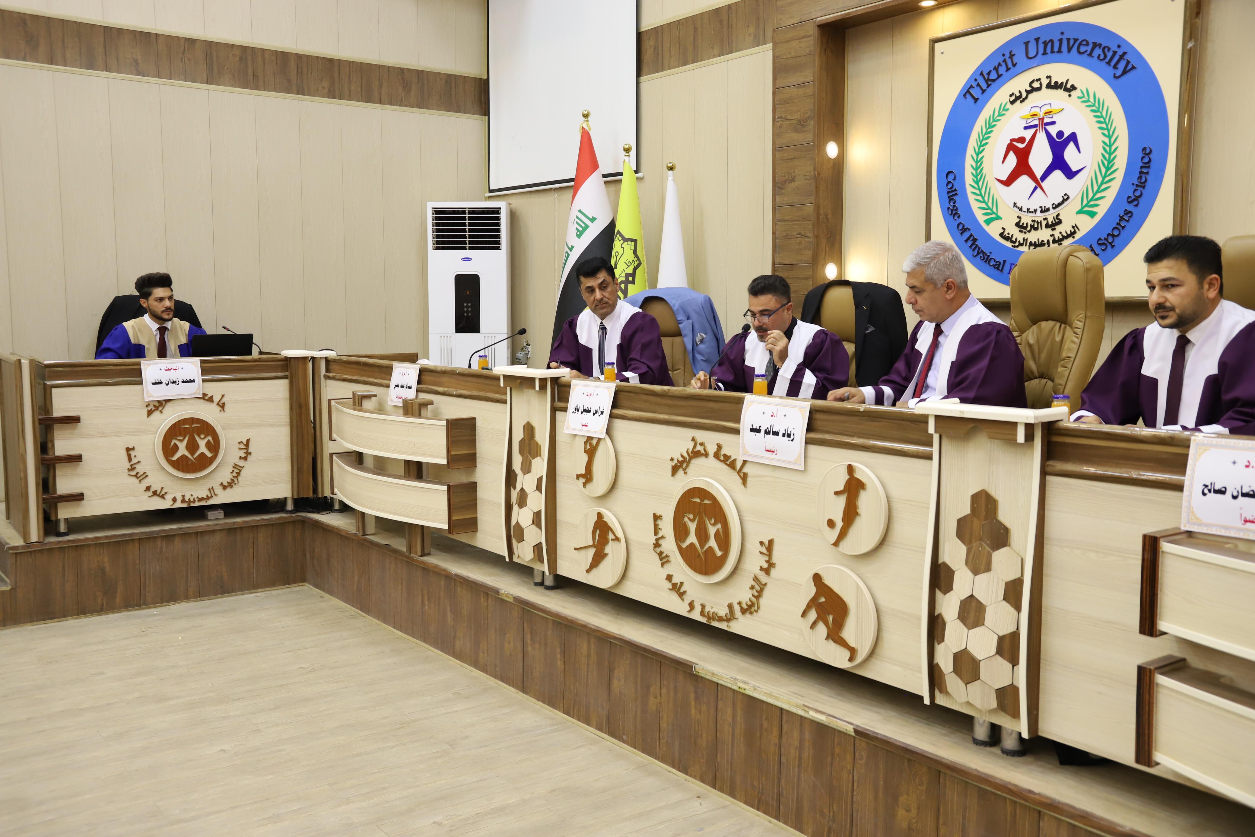 احتضنتها قاعة الدكتور نزهان في كلية التربية البدنية وعلوم الرياضة وقد اثنى رئيس الجامعة على دقة الملاحظات العلمية التي طرحتها لجنتي المناقشتين وصوابها وبارك الجهود المبذولة من قبل الطالبين في هذه الرسائل واشاد بدور الاساتذة المشرفين ولجنتي المناقشتين مؤكدا على المستوى العلمي والرصين الذي تحققه هذه المناقشات والتي تعكس دور جامعة تكريت كصرح علمي كبير.