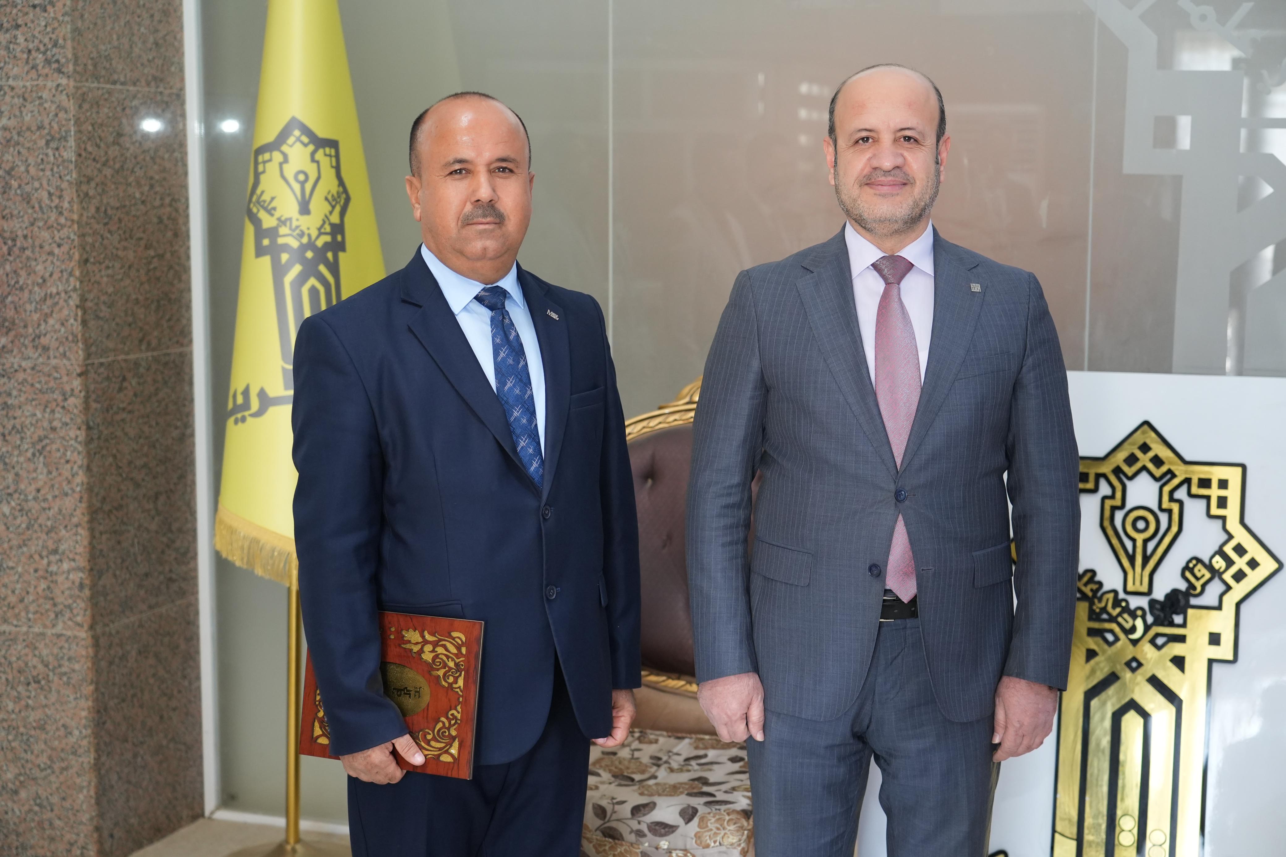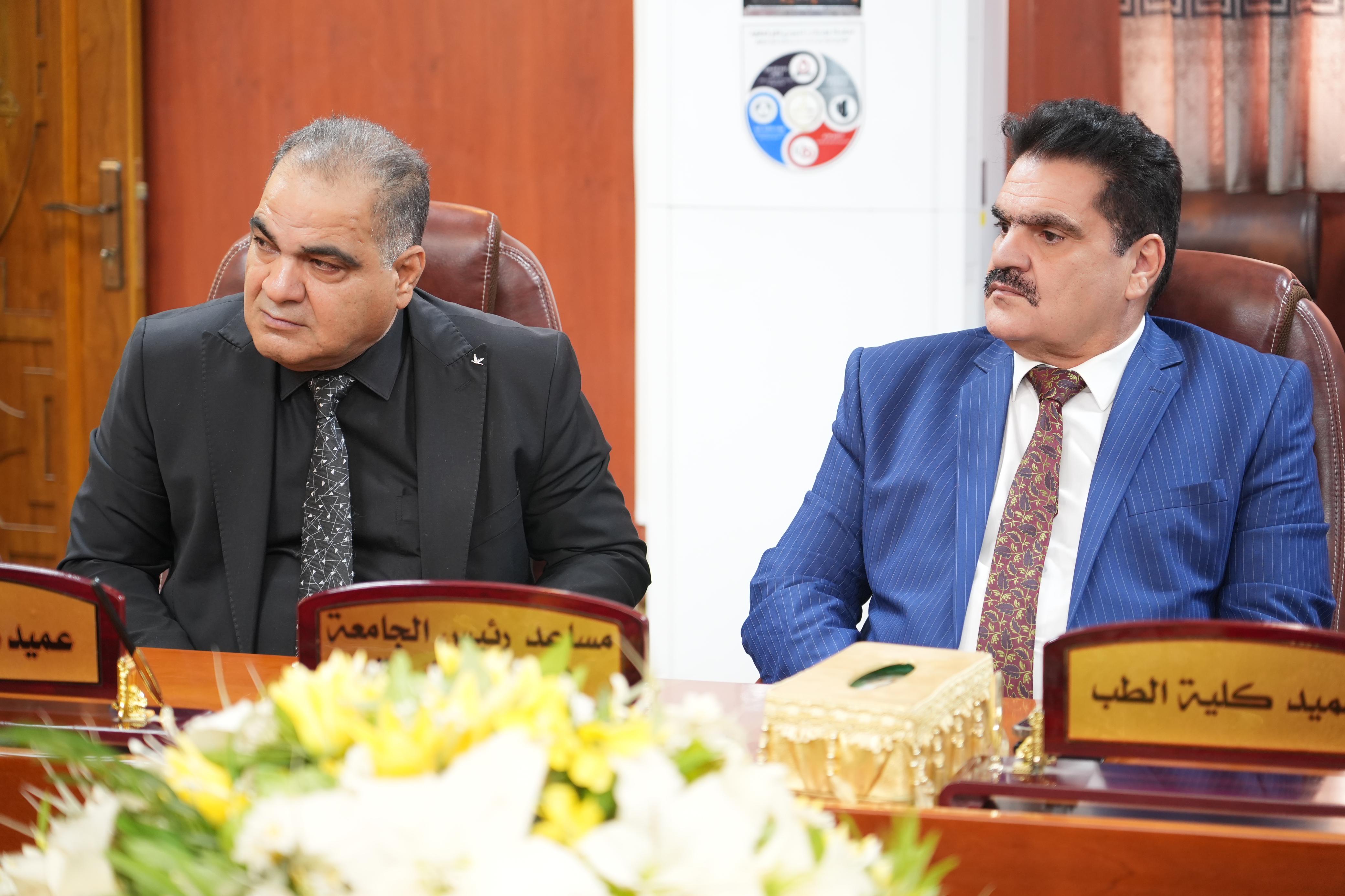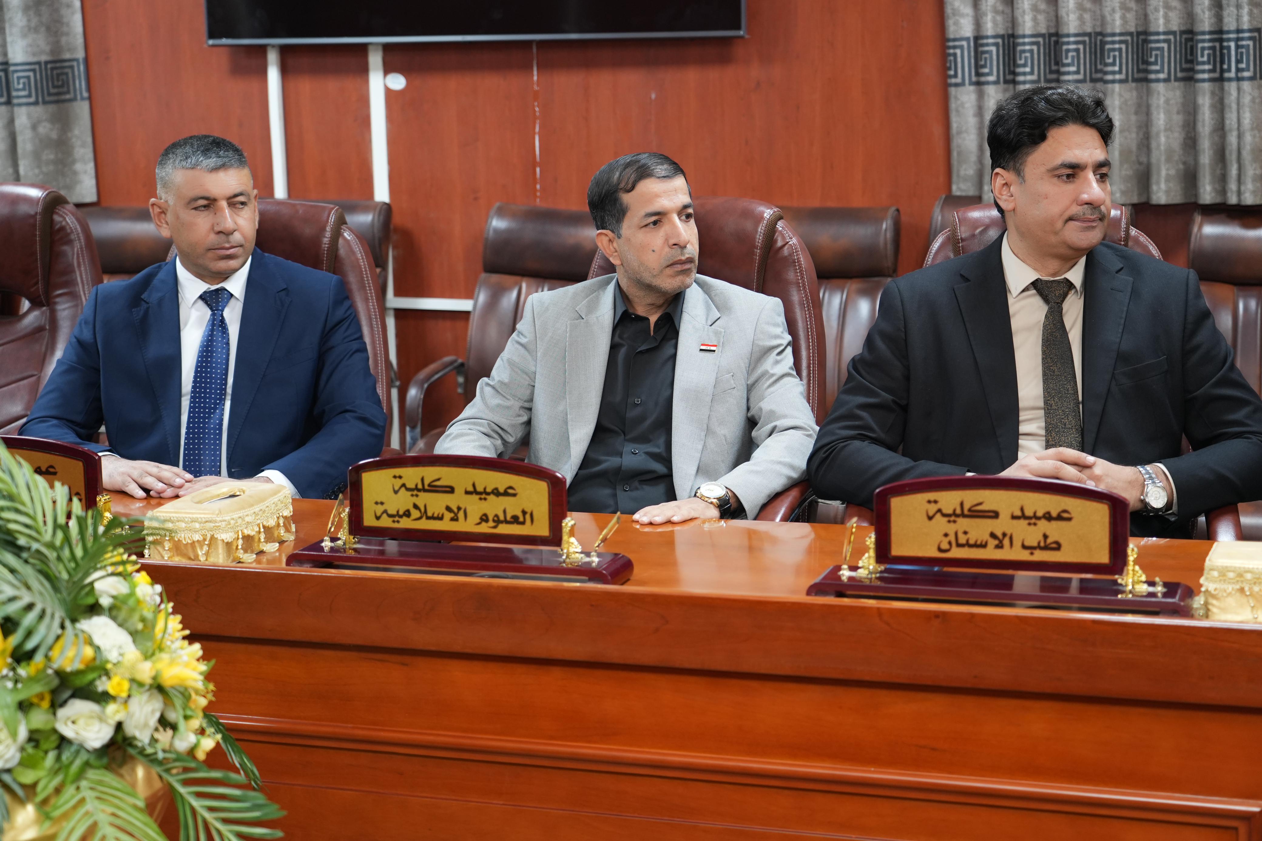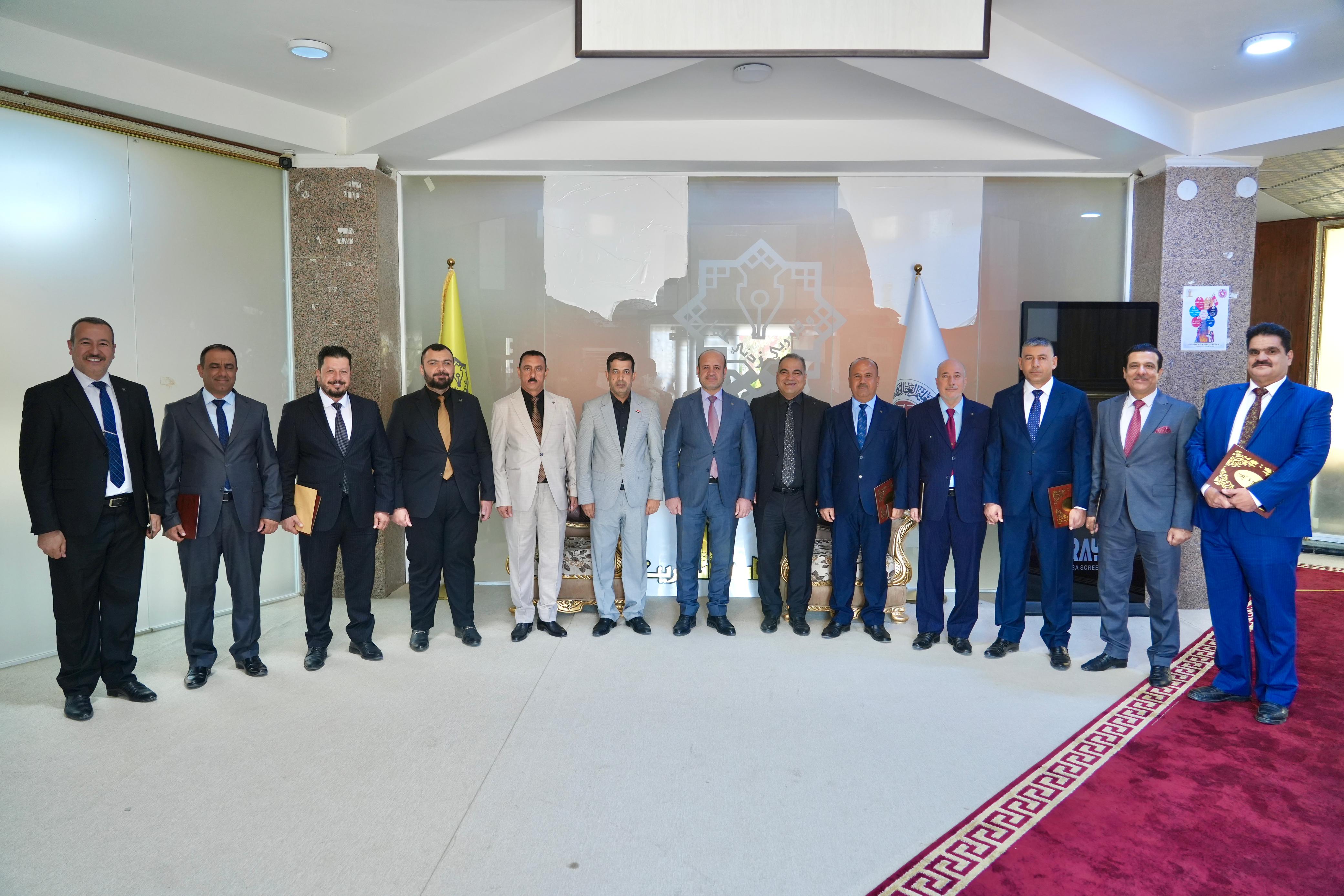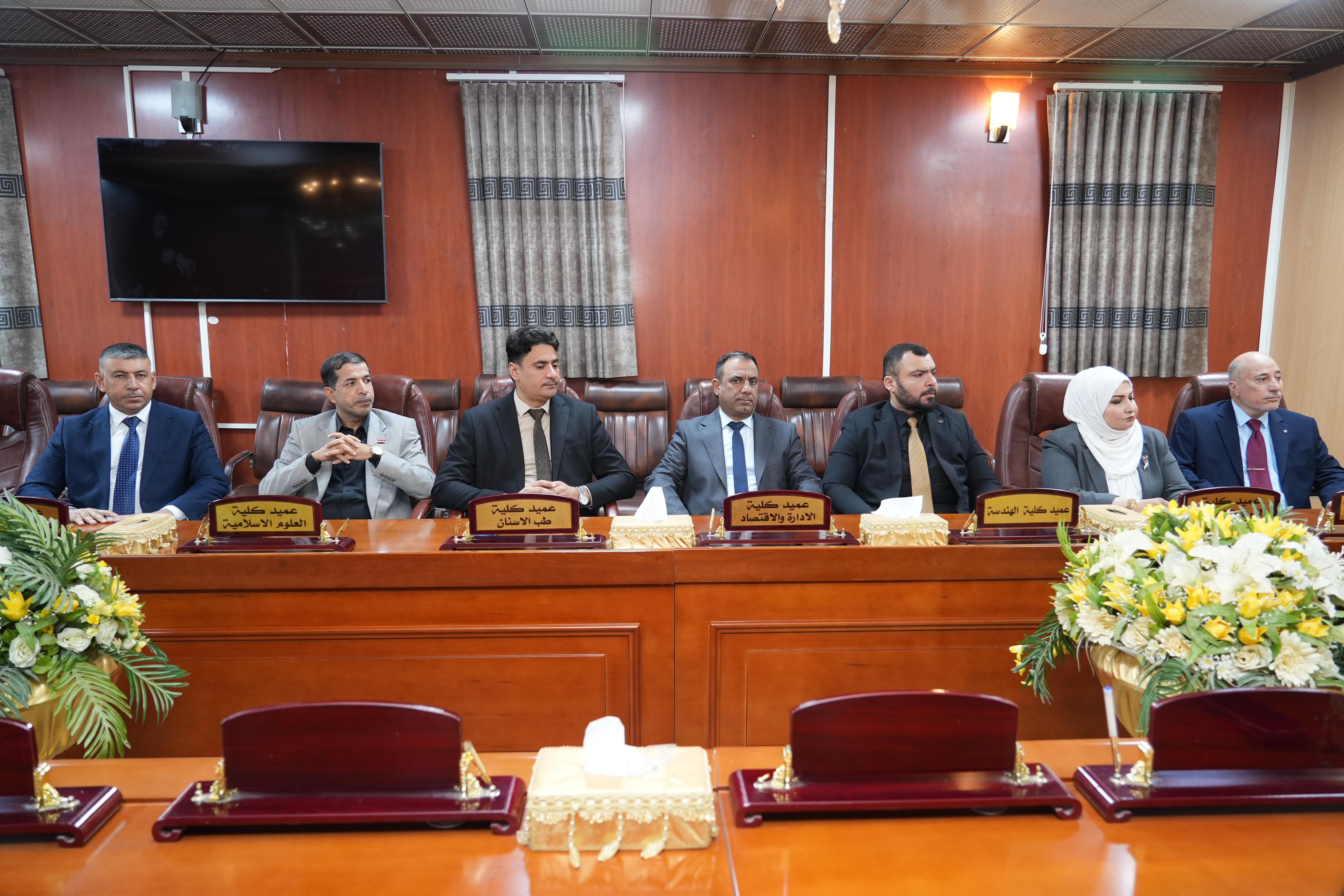 استقبل الاستاذ الدكتور وعد محمود رؤوف رئيس جامعة تكريت في مكتبه بحضور الاستاذ الدكتور حسين عبد اسماعيل مساعد رئيس الجامعة للشؤون الادارية السادة عمداء الكليات في الجامعة المثبتين بأمر وزاري وبعد الترحيب بهم بارك رئيس الجامعة للحاضرين تثبيتهم وقدم لهم تهانيه بصدور الامر الوزاري الخاص بقرار تثبيتهم عمداء على كلياتهم داعيا الى بذل مزيد من الجهد والتفاني والعطاء والاخلاص لخدمة الجامعة ومسيرة التعليم العالي العلمية والاكاديمية قام بعدها بتسليمهم الاوامر الوزارية الخاصة بتثبيتهم متمنيا لهم الموفقية والنجاح في مسيرتهم