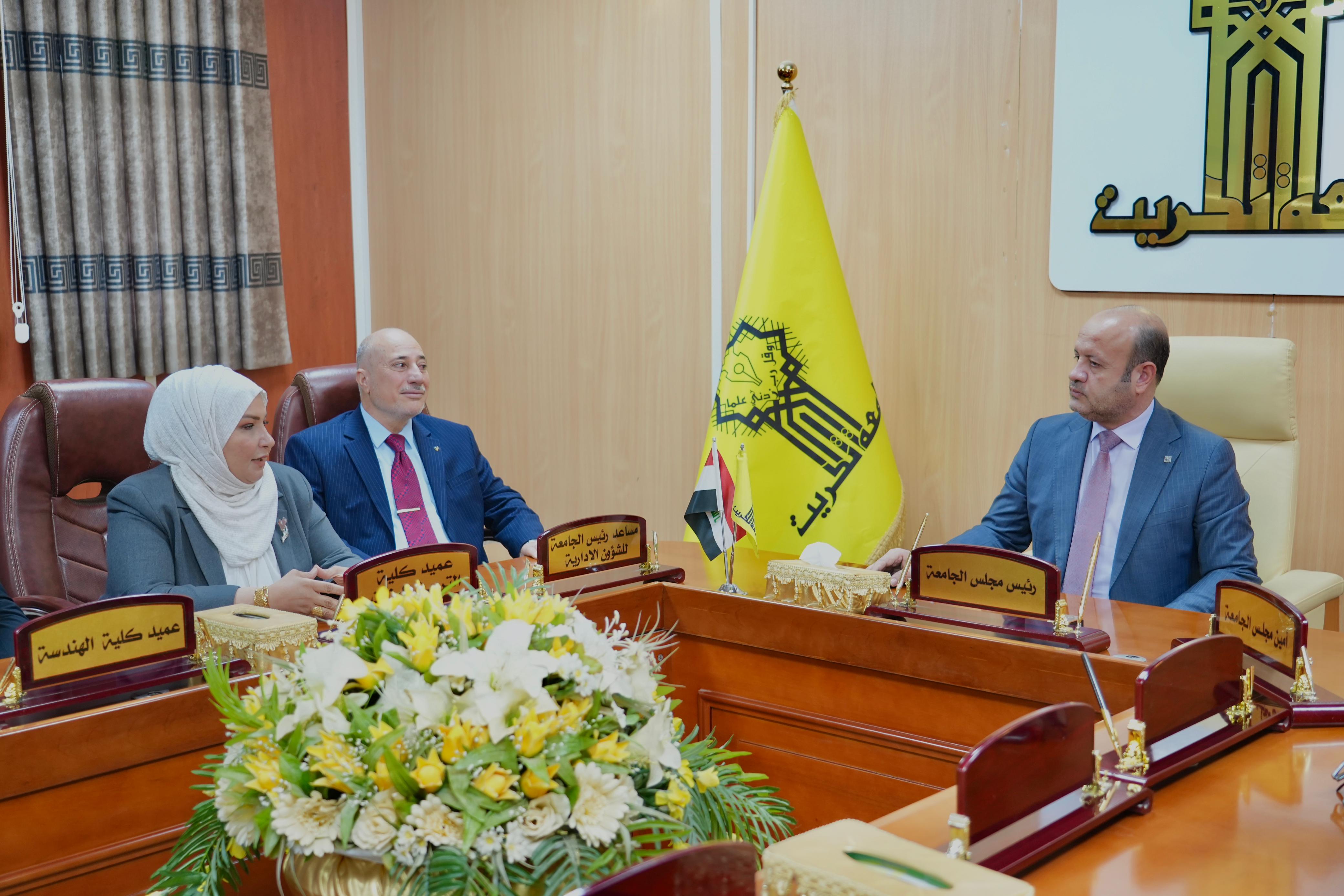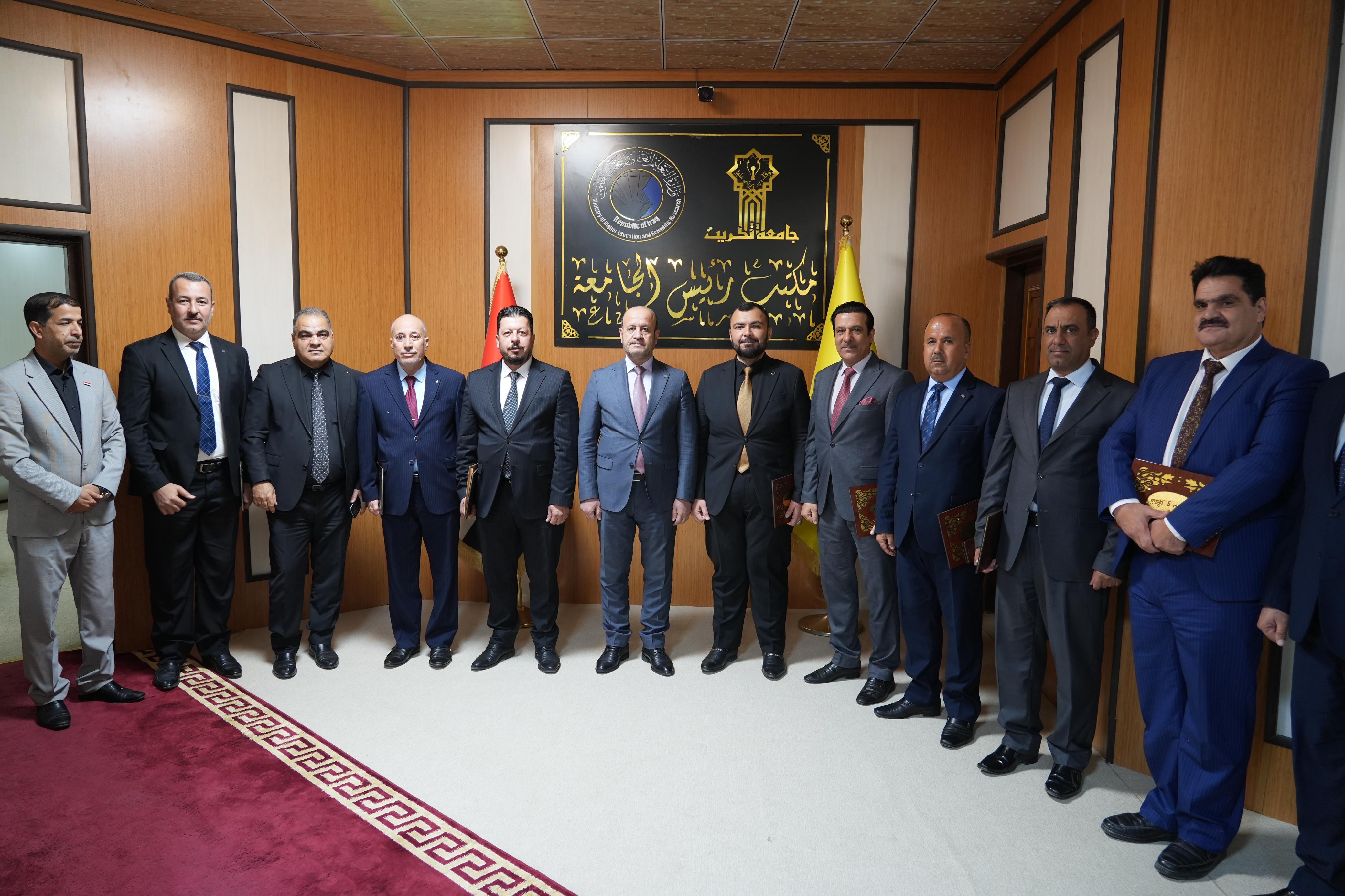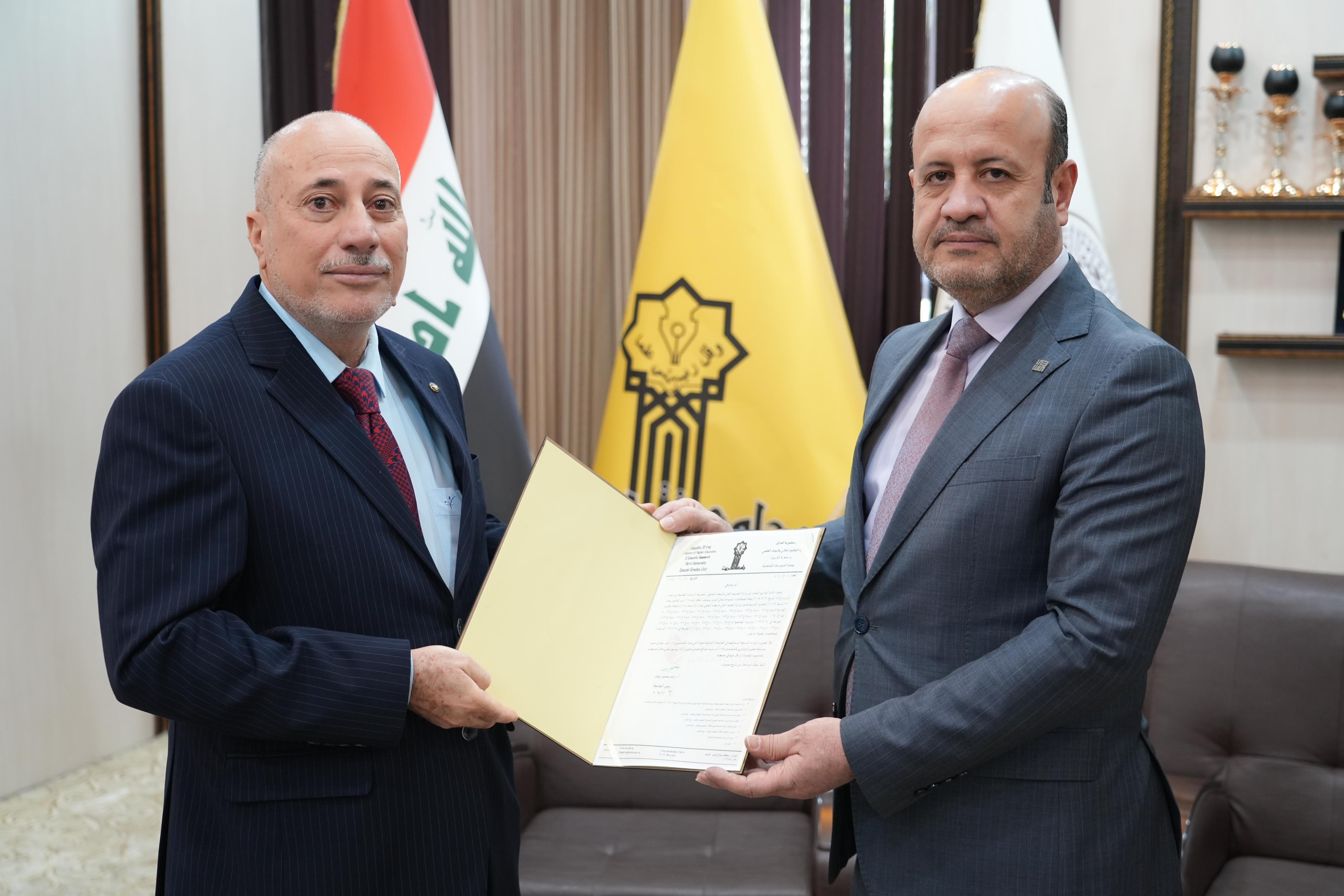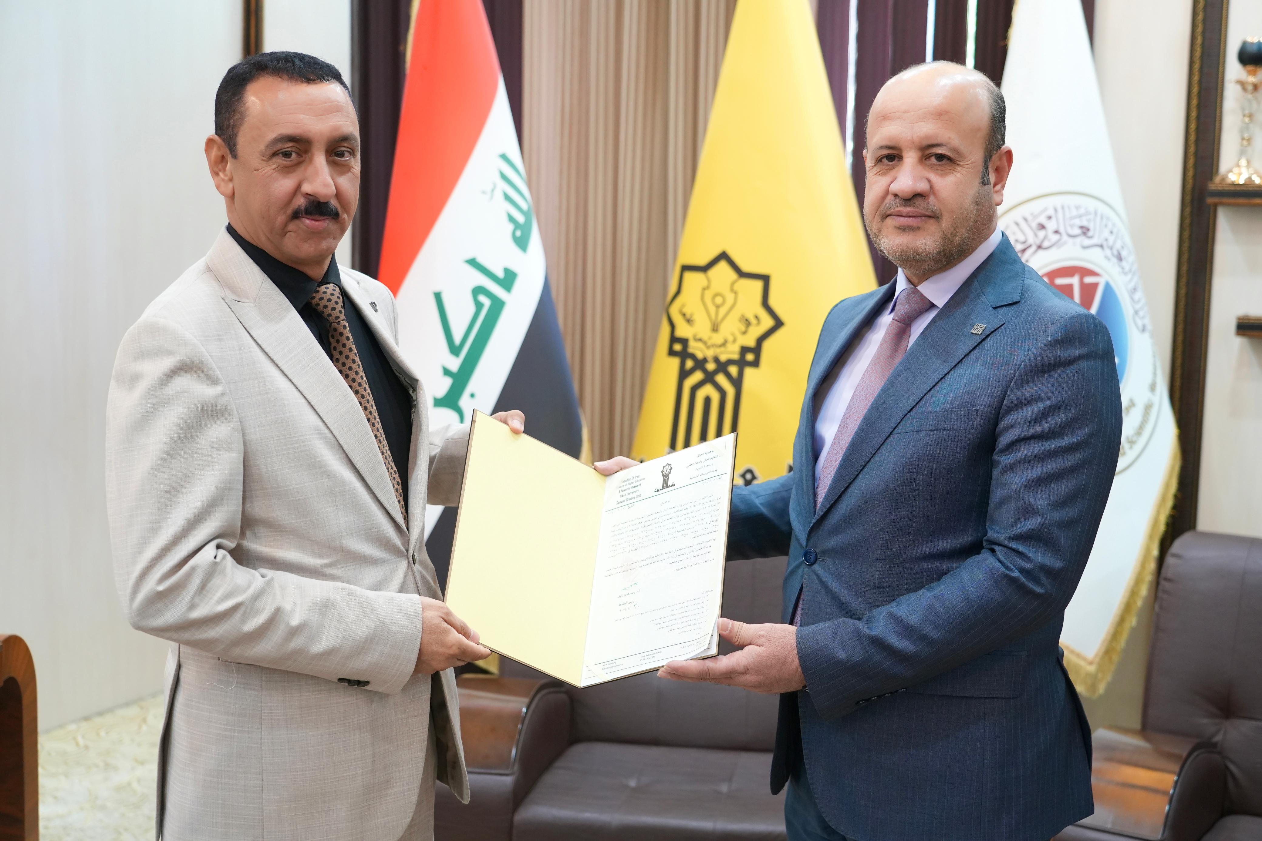 استقبل الاستاذ الدكتور وعد محمود رؤوف رئيس جامعة تكريت في مكتبه بحضور الاستاذ الدكتور حسين عبد اسماعيل مساعد رئيس الجامعة للشؤون الادارية السادة عمداء الكليات في الجامعة المثبتين بأمر وزاري وبعد الترحيب بهم بارك رئيس الجامعة للحاضرين تثبيتهم وقدم لهم تهانيه بصدور الامر الوزاري الخاص بقرار تثبيتهم عمداء على كلياتهم داعيا الى بذل مزيد من الجهد والتفاني والعطاء والاخلاص لخدمة الجامعة ومسيرة التعليم العالي العلمية والاكاديمية قام بعدها بتسليمهم الاوامر الوزارية الخاصة بتثبيتهم متمنيا لهم الموفقية والنجاح في مسيرتهم
