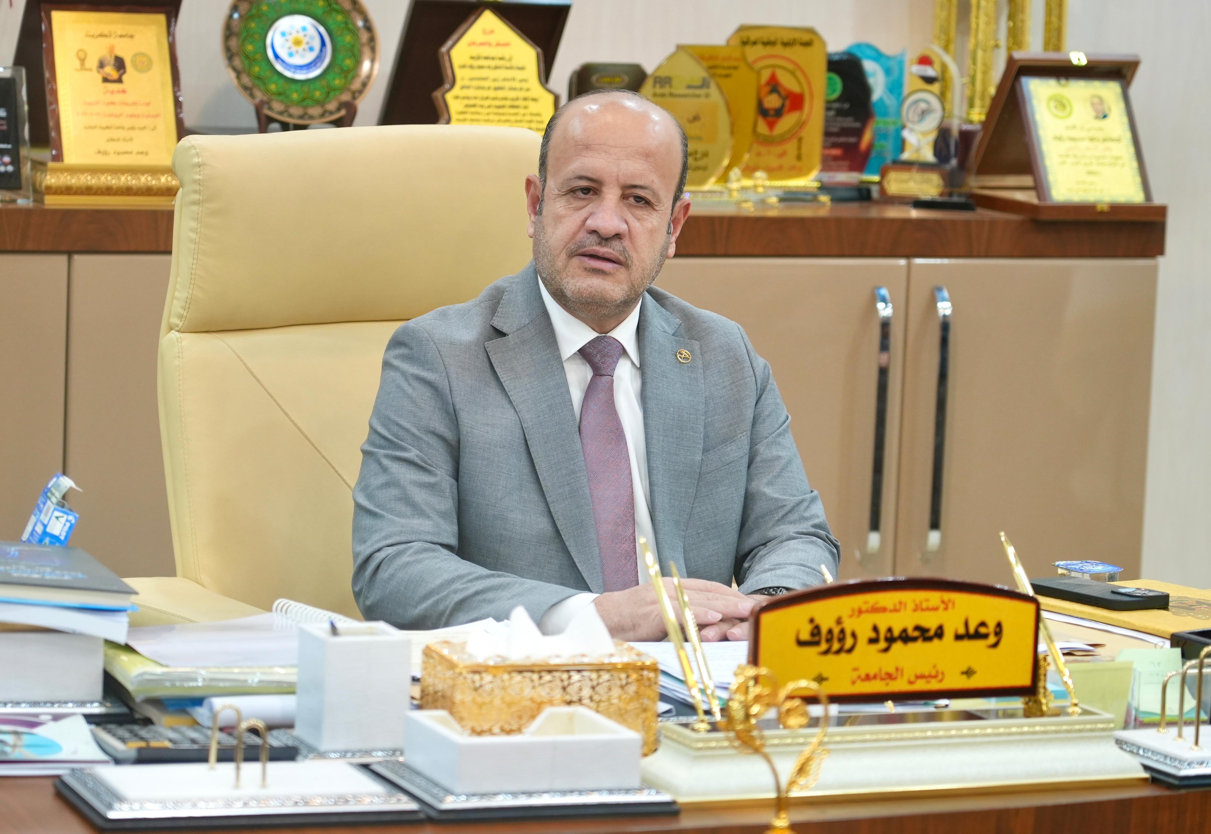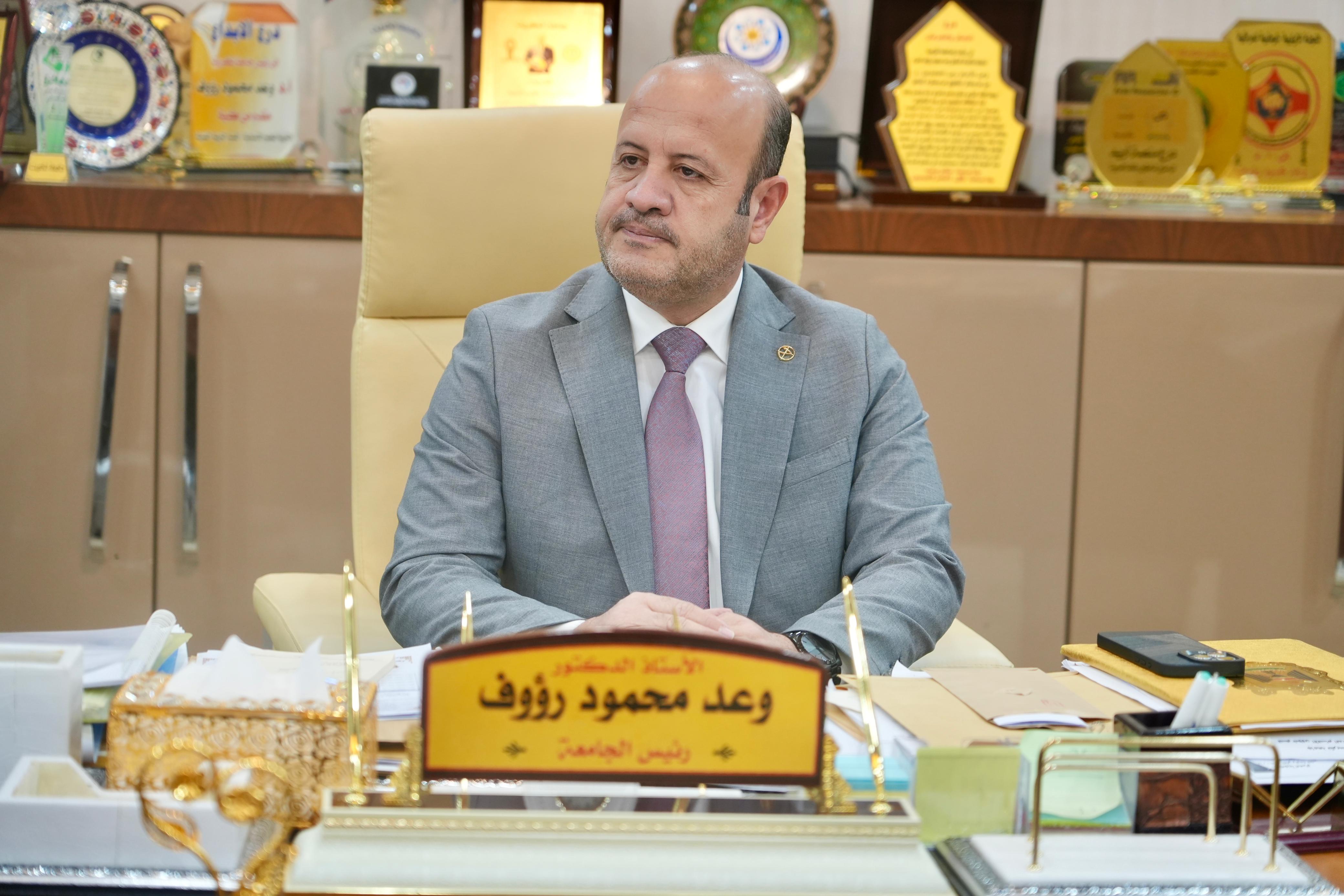استقبل الاستاذ الدكتور وعد محمود رؤوف في مكتبه السيد كاوه محمد رشيد مستشار محافظ صلاح الدين لشؤون الامنية والعسكرية