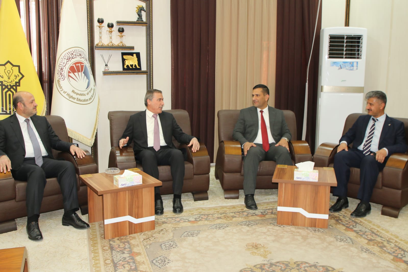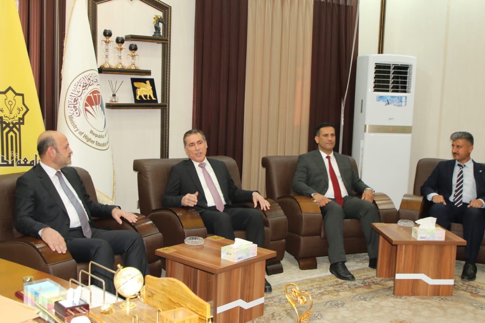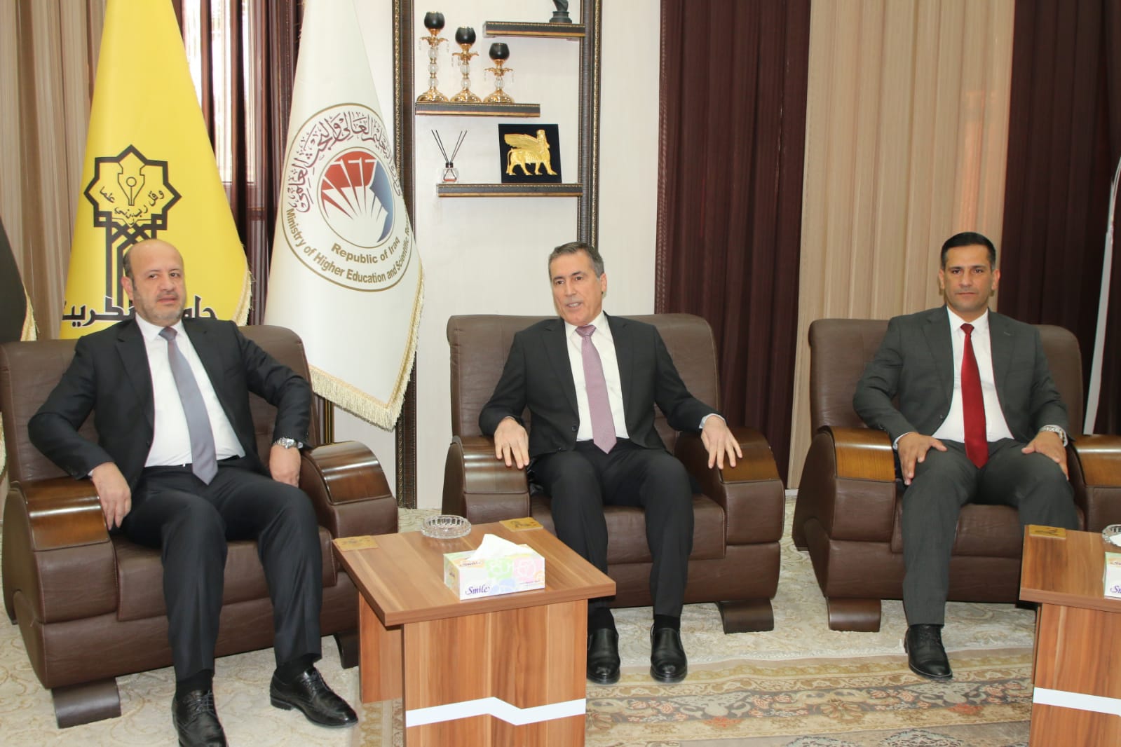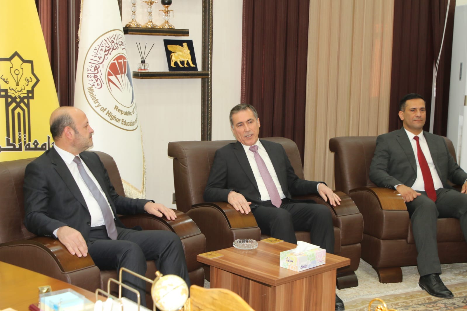 وبعد الترحيب بالاستاذ الضيف في رحاب جامعة تكريت جرى التباحث بالامور ذات الاهتمام المشترك بما يحقق الإرتقاء بالواقع العلمي والاكاديمي