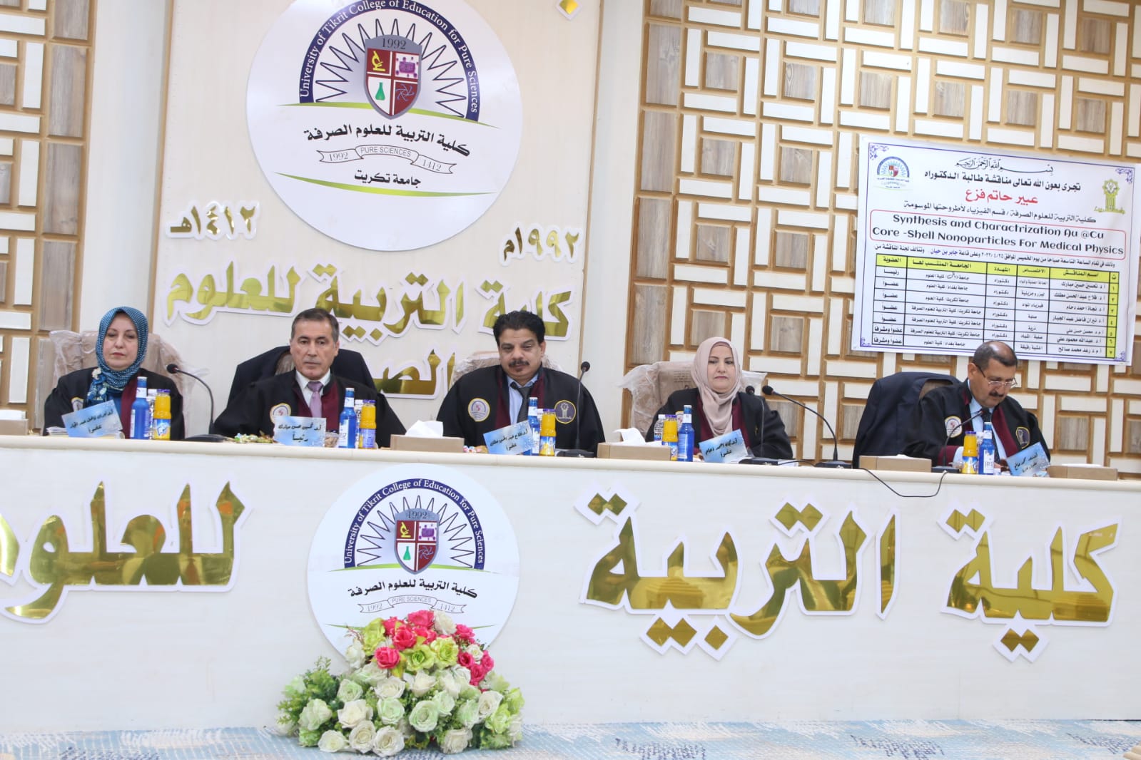 حضر بعدها رئيس الجامعة المناقشة وبارك للطالبة جهودها في هذه الاطروحة واشاد بالملاحظات العلمية للجنة المناقشة متمنيا الموفقية للجميع.