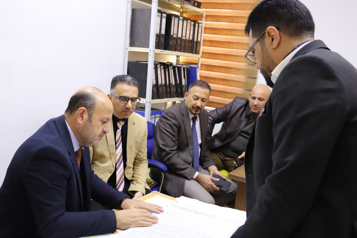 وكان في استقبال السيد رئيس الجامعة السيدين معاوني عميد الكلية الاداري والعلمي حيث تجول برفقتهما في أروقة الكلية وعدد من اقسامها للاطلاع على واقعها واحتياجاتها واهم المشاكل التي تعرقل سير العمل وايجاد الحلول المناسبة لها وزار اللجنة الامتحانية بالكلية لمتابعة واقع سير الامتحانات لطلبة الدراسات الأولية والعليا واطلع على نماذج الأسئلة لمعرفة مدى ملاءمتها مع الوقت المخصص والمناهج المقررة والتقى باللجنة العاملة على تهيئة الدفاتر والأسئلة الامتحانية واطلع على آلية العمل ومدى توفير المستلزمات الضروري للطلبة لاداء الامتحانات وتهيئة البيئة الملائمة لإنجاح العملية الامتحانية