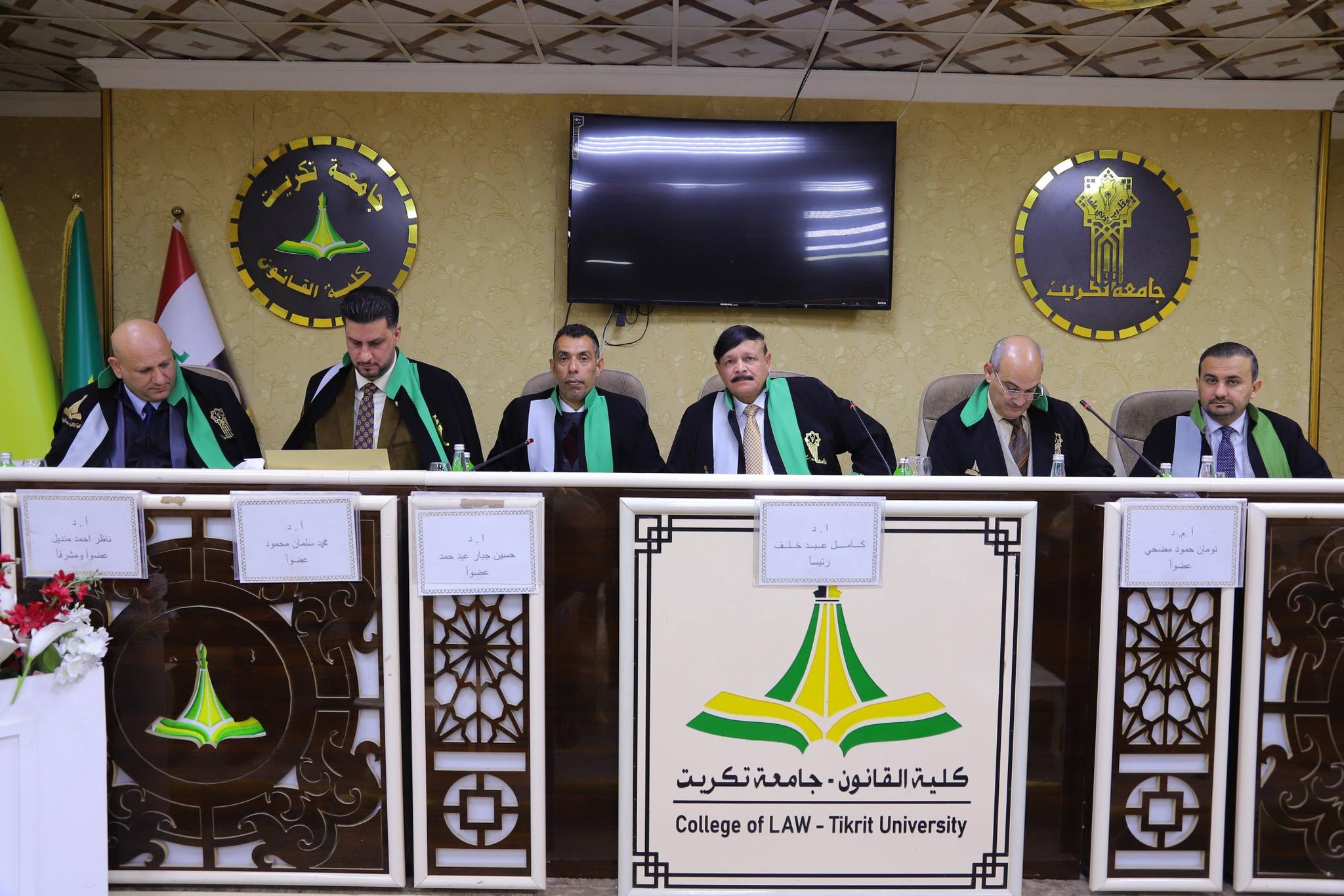 حضر رئيس جامعة تكريت الأستاذ الدكتور وعد محمود رؤوف مناقشة أطروحة الدكتوراه في كلية القانون / قسم القانون العام، للطالب ليث إبراهيم علي، والموسومة