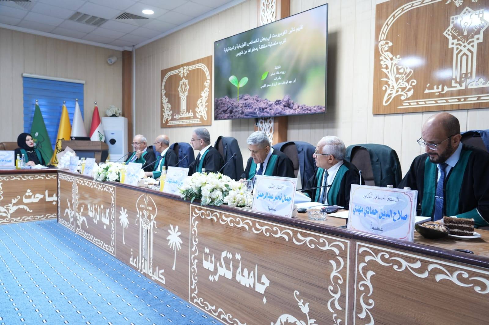 حضر الأستاذ الدكتور وعد محمود رؤوف، رئيس جامعة تكريت صباح اليوم الاريعاء مناقشة أطروحة الدكتوراه المقدّمة من الطالبة (رويدة خالد صابر ) في كلية الزراعة، والموسومة :