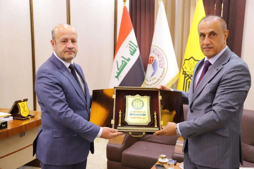 وقد عبر وفد جامعة النبراس عن تقديره لحفاوة الاستقبال، مقدّماً دروع الجامعة وكتاب شكر وتقدير إلى رئيس جامعة تكريت، عرفاناً بدوره في دعم العلاقات الأكاديمية بين المؤسستين. من جهته، قدّم الأستاذ الدكتور وعد محمود رؤوف درع جامعة تكريت إلى الوفد الزائر، تأكيداً على عمق العلاقات والرغبة المتبادلة في تفعيل مجالات التعاون المشترك.