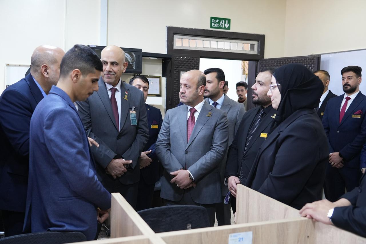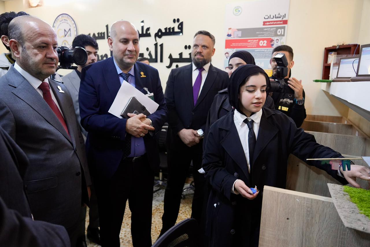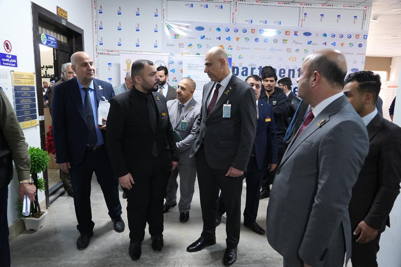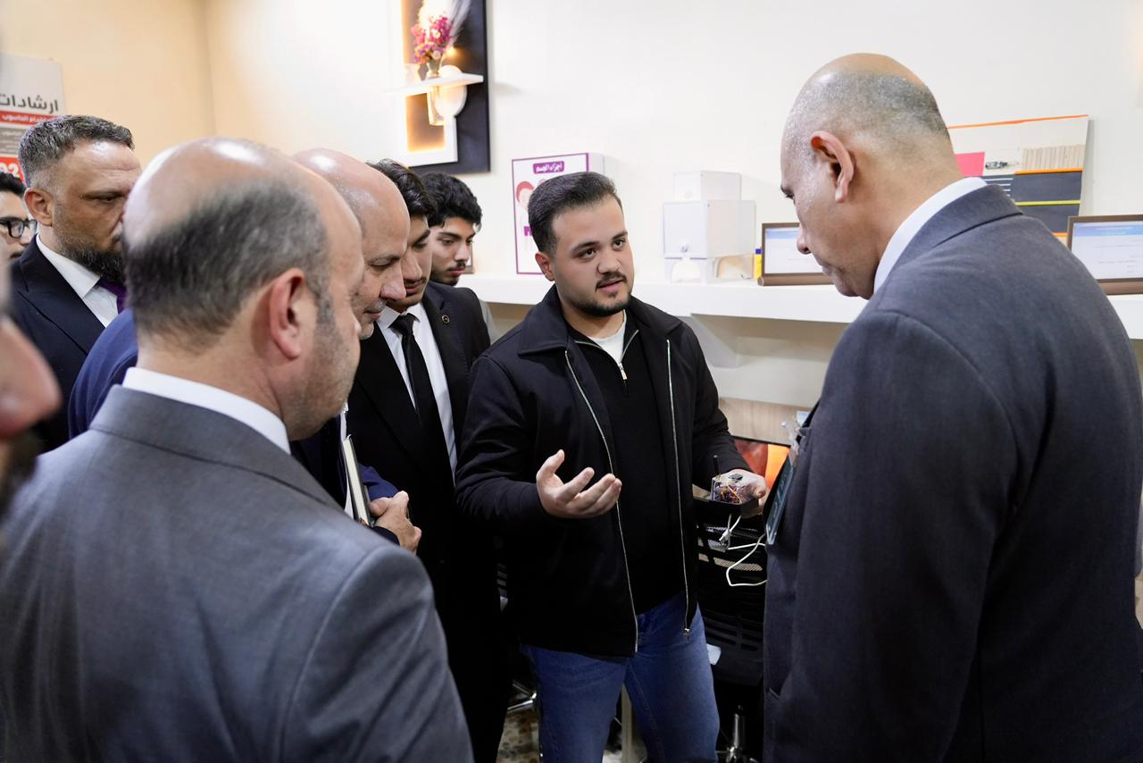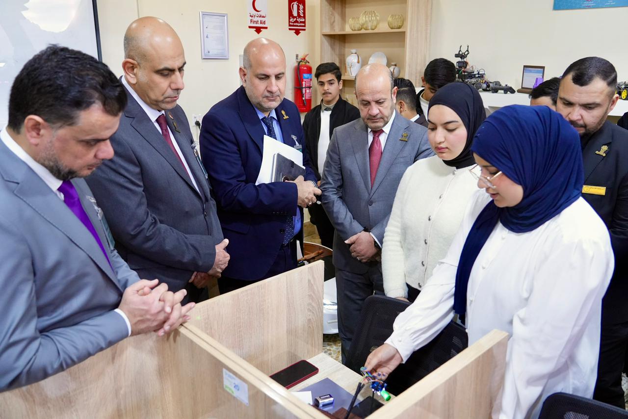 واطّلع السيد رئيس الجامعة والوفد المرافق له على الأجهزة الحديثة والتقنيات المتوفرة داخل المختبر، كما استمعوا إلى شرحٍ مفصّل عن المشاريع والابتكارات التي أنجزها طلبة المرحلة الأولى، والتي عكست مستوى الإبداع والمهارات العملية التي يتمتع بها طلبة الكلية، ولاسيما في مجالات الذكاء الاصطناعي والتطبيقات الذكية.