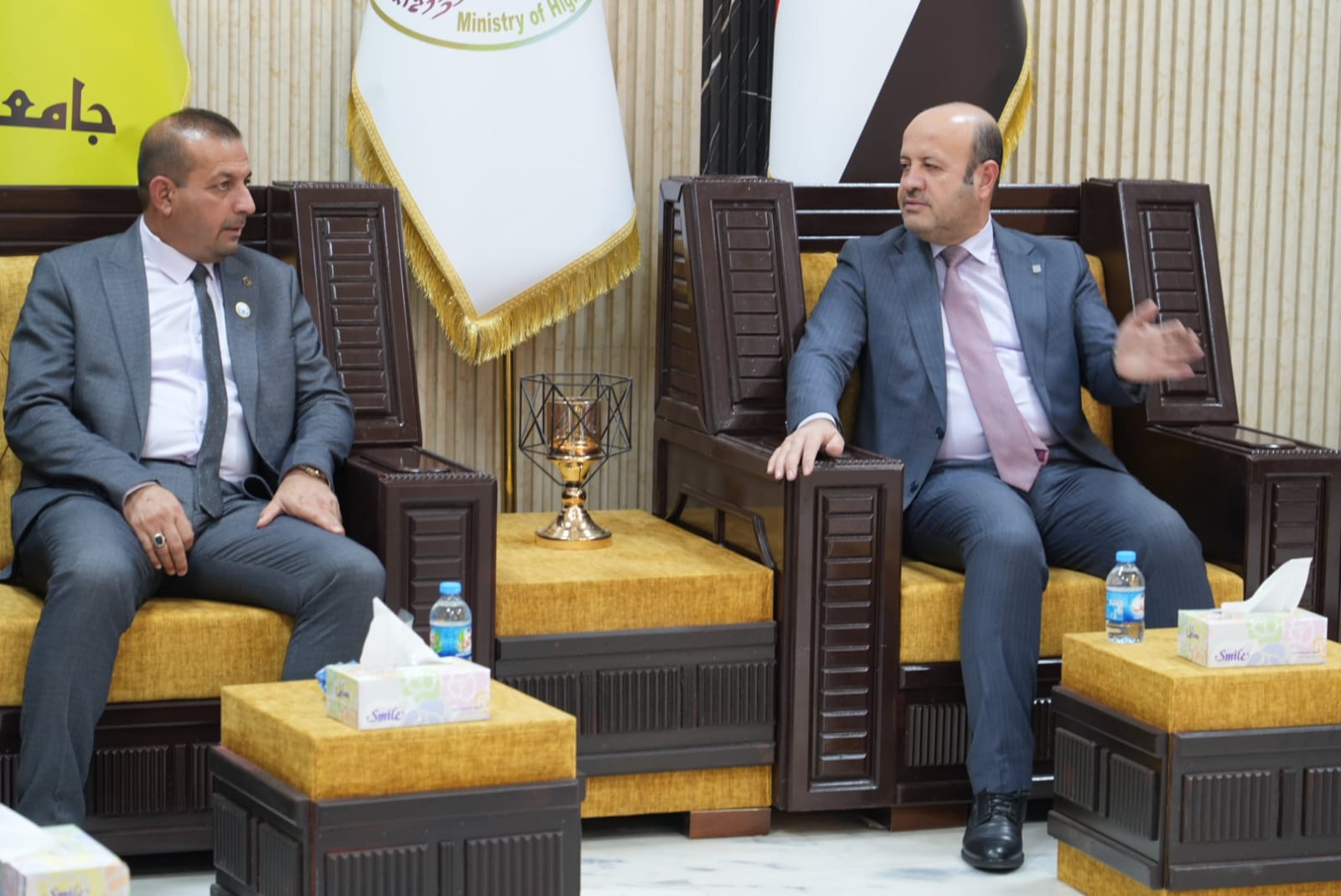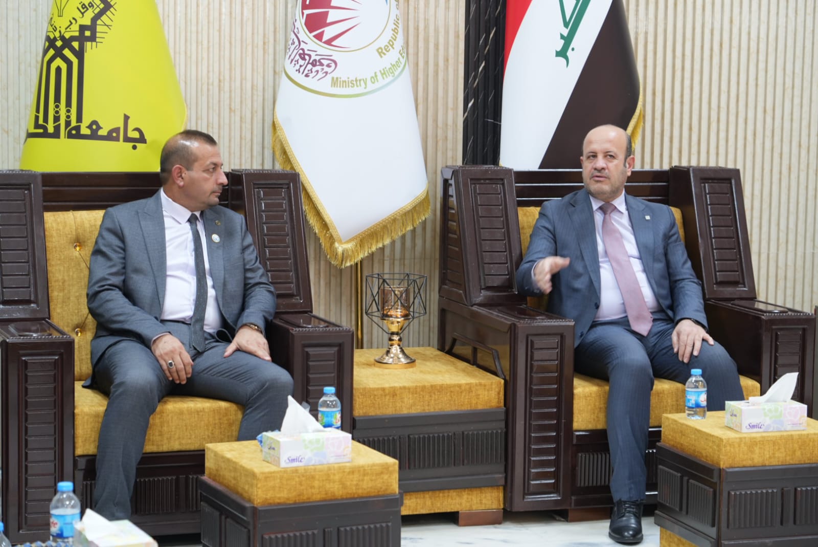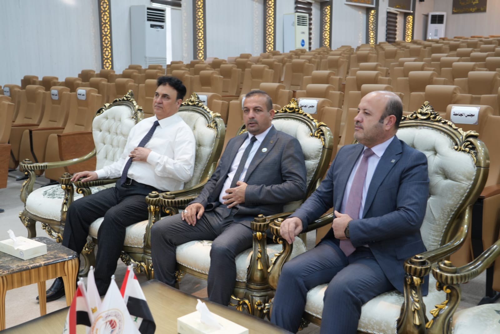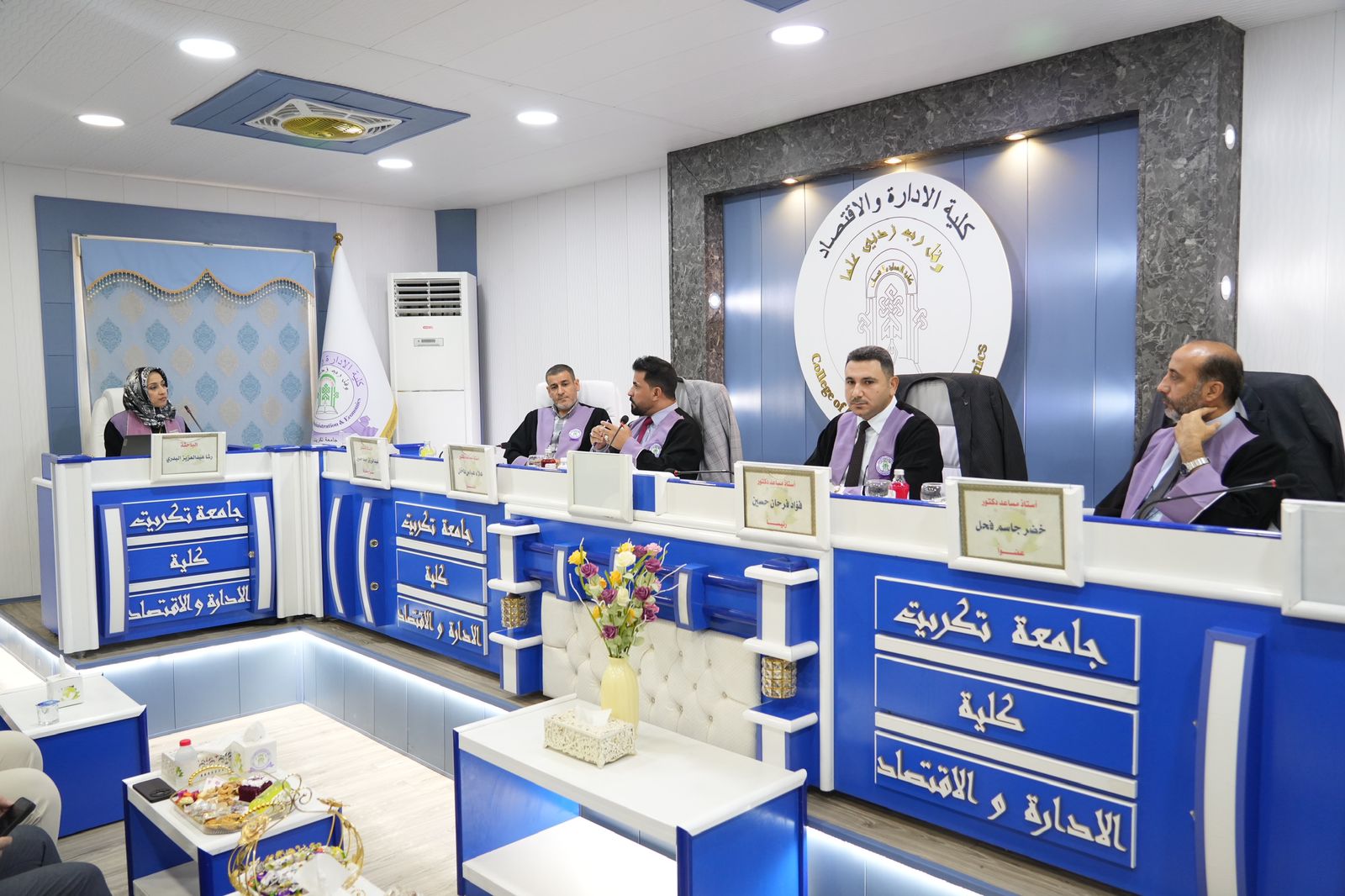 ضمن النهج المستمر لرئيس الجامعة في المشاركة وحضوره الشخصي والفاعل في مناقشات الرسائل والاطاريح العلمية حضر الاستاذ الدكتور وعد محمود رؤوف رئيس جامعة تكريت مناقشتين الاولى اطروحة دكتوراه بكلية الهندسة للطالبة (نضال عدنان جاسم) والثانية مناقشة رسالة ماجستير بكلية الادارة والاقتصاد للطالبة (رشا عبدالعزيز البدري)