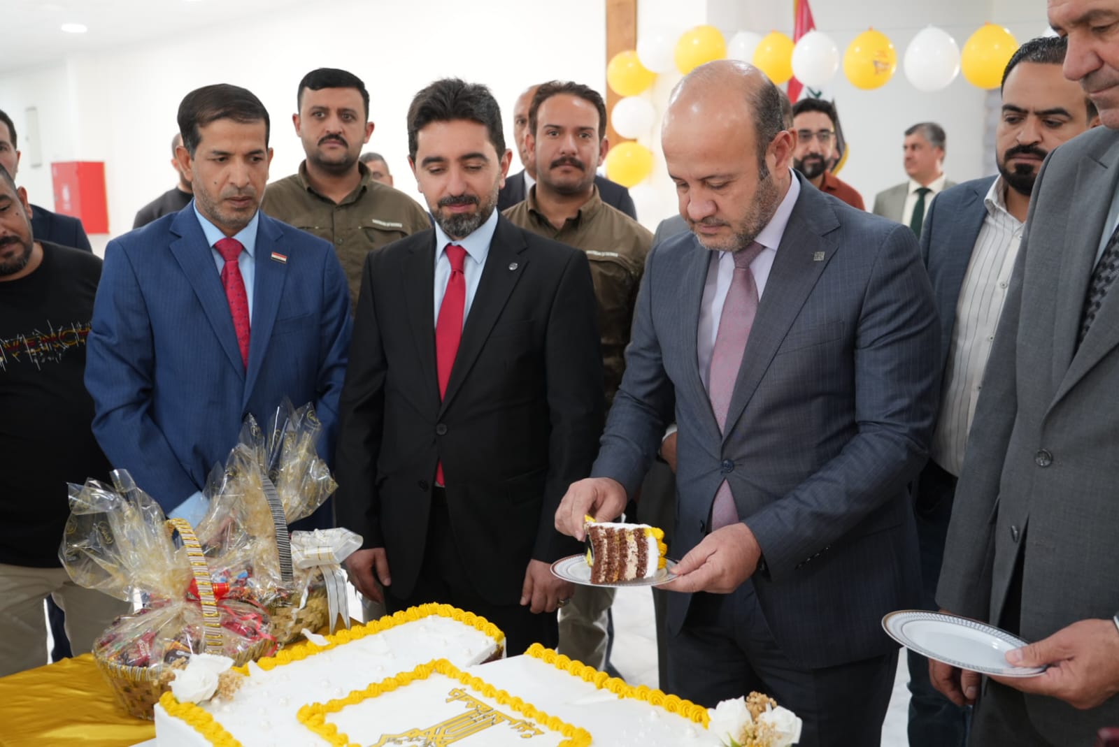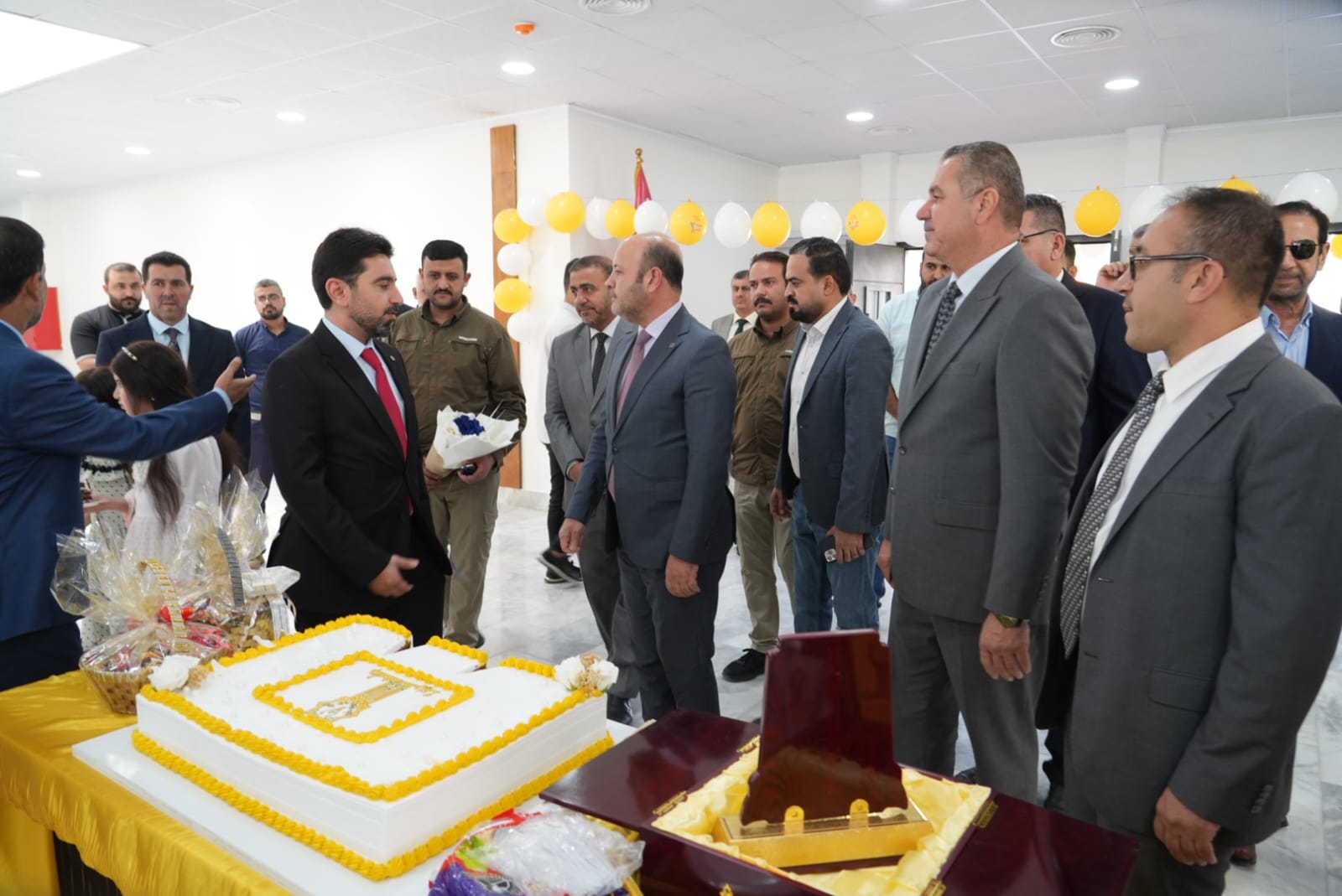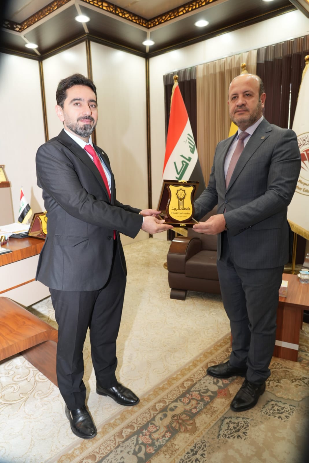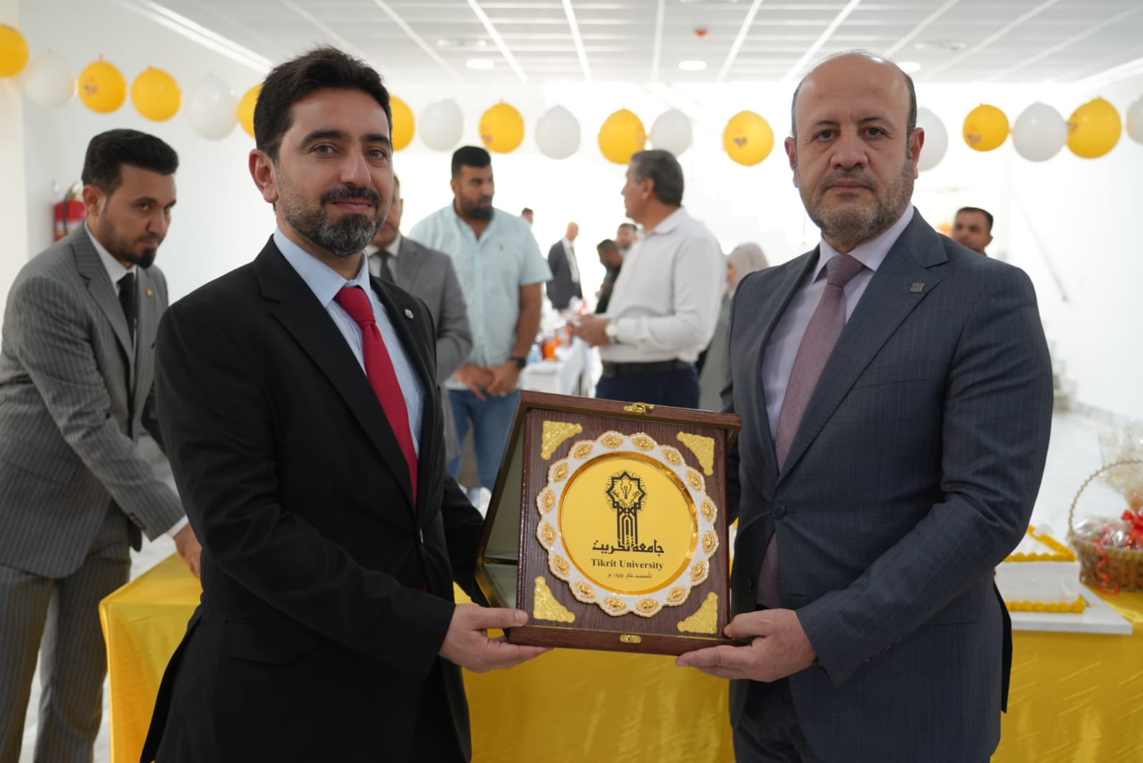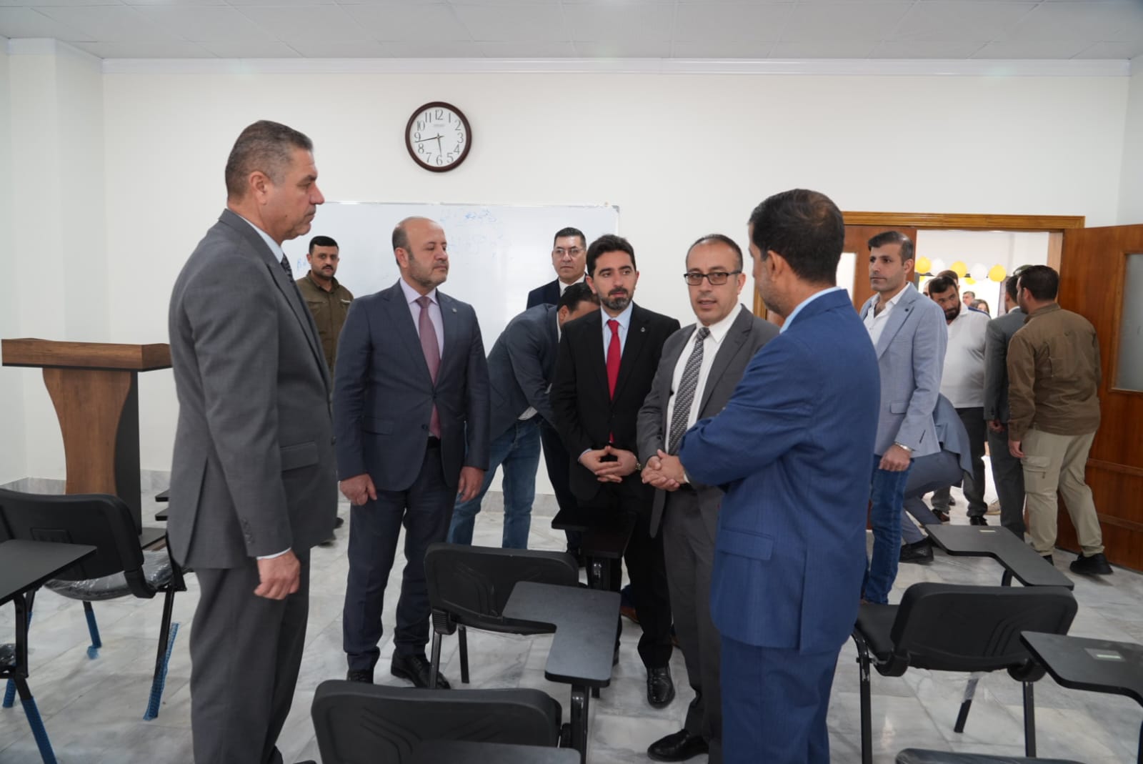 في اروقة واقسام البناية والاطلاع على دقة التنفيذ مباركين الجهود الدولية والمحلية التي أسهمت في هذا الانجاز الذي يخدم المسيرة العلمية والتربوية في جامعة تكريت