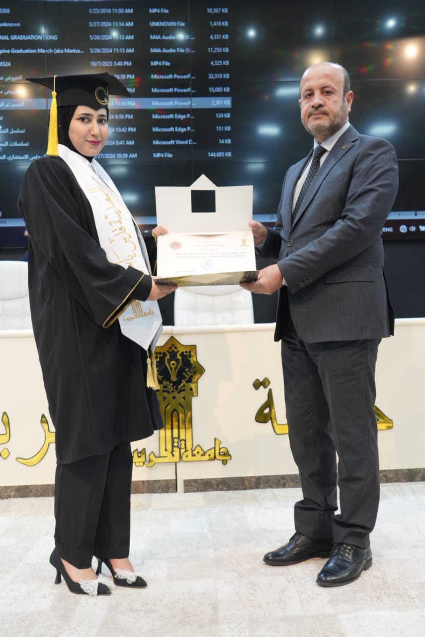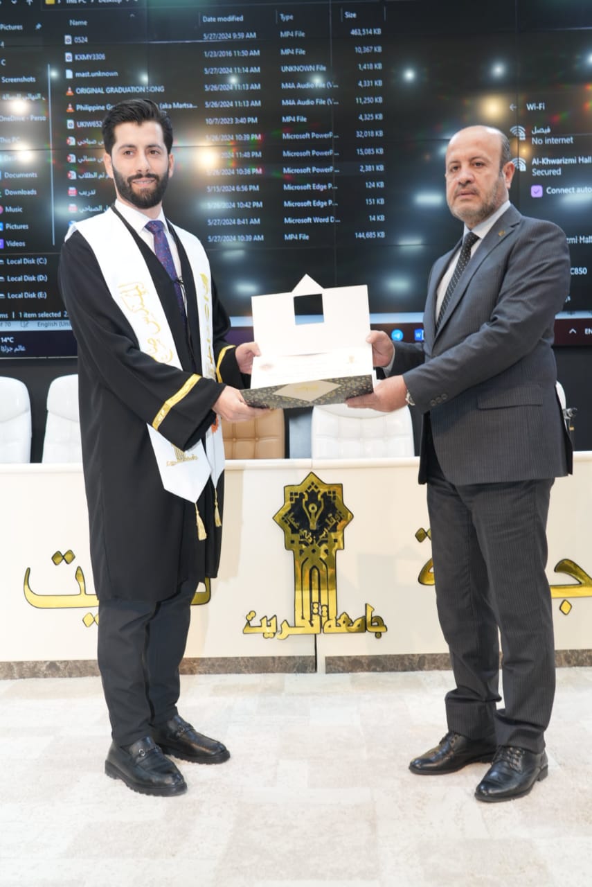 وفي ختام فعاليات الحفل تم التقاط صورة جماعية وتوزيع الدروع والشهادات التقديرية للطلبة الاوائل على الكلية تقديرية تثميناً لاجتهادهم ومثابرتهم.