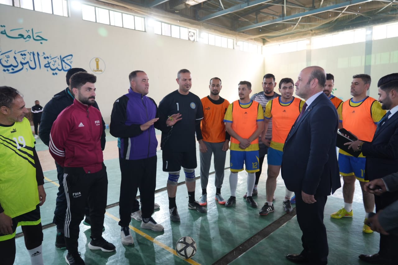 الموافق 21/1/2025 لعبة كرة قدم للصالات بين فريقي كلية التربية البدنية وعلوم الرياضة وكلية التربية للعلوم الصرفة ضمن بطولة كأس رئيس الجامعة للتدريسيين والتي نضمتها كلية التربية البدنية وعلوم الرياضة.