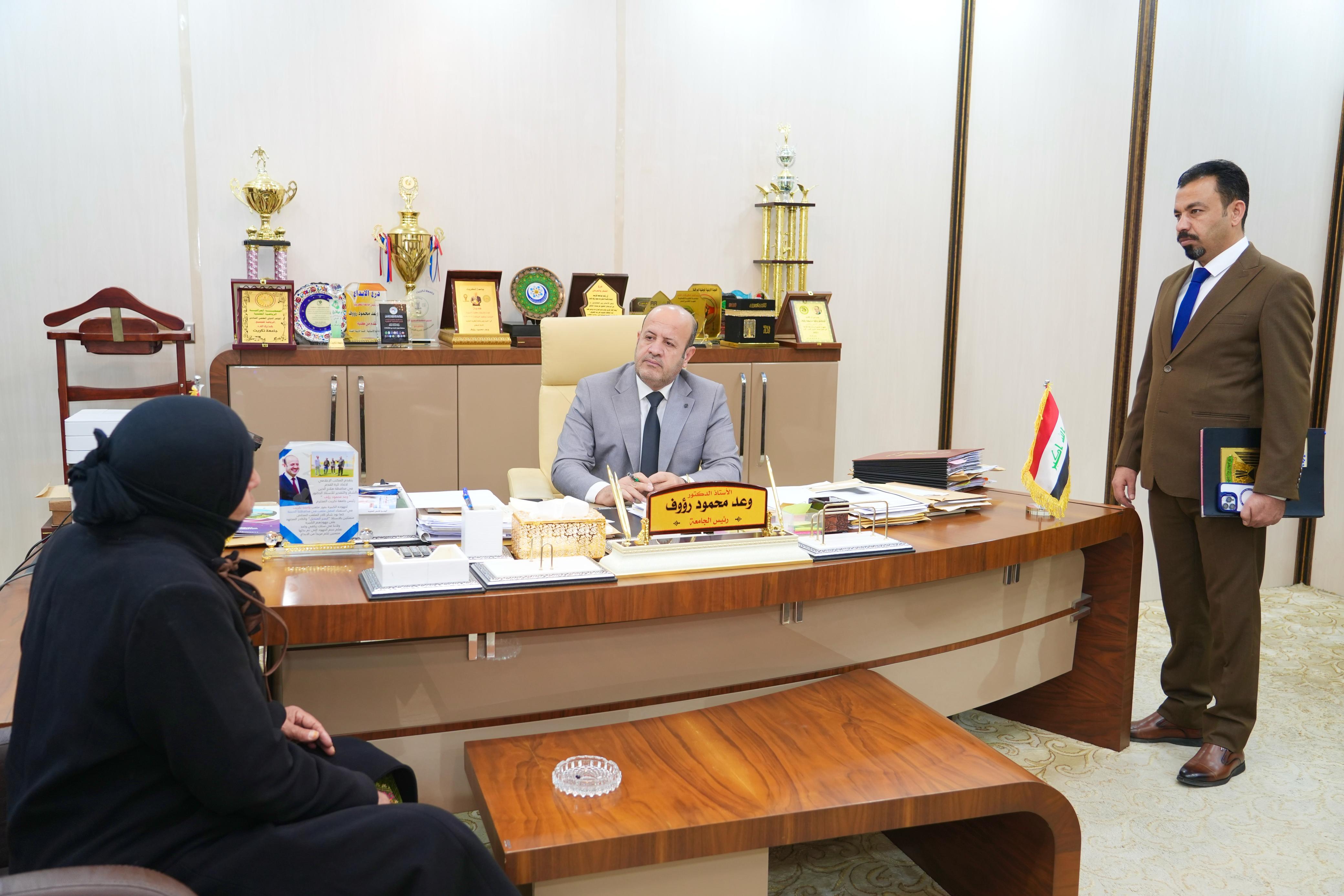 أجرى الأستاذ الدكتور وعد محمود رؤوف رئيس جامعة تكريت بمكتبه في رئاسة الجامعة اليوم الاثنين الموافق ١٠/ ٣/ ٢٠٢٥ وضمن مقابلاته الأسبوعية مع عدد من المواطنين ومنتسبي الجامعة للتواصل والاستماع إلى قضاياهم ومشاكلهم لمعالجتها بصورة مباشرة وفعالة ضمن صلاحياته القانونية والإدارية في إطار البرنامج الأسبوعي الخاص بمقابلات شؤون المواطنين