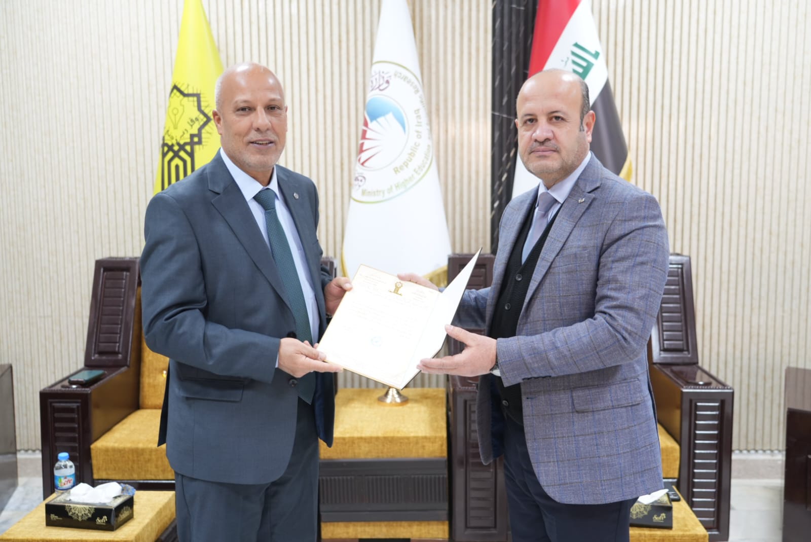 في اطار التعاون المشترك بين جامعة تكريت والجامعات العراقية وتثميناً لجهوده المبذولة خلال ترأسة لجنة مناقشة رسالة ماجستير بكلية علوم الحاسوب والرياضيات / قسم الرياضيات للطالبة ( رفل عبدالحميد سعيد)