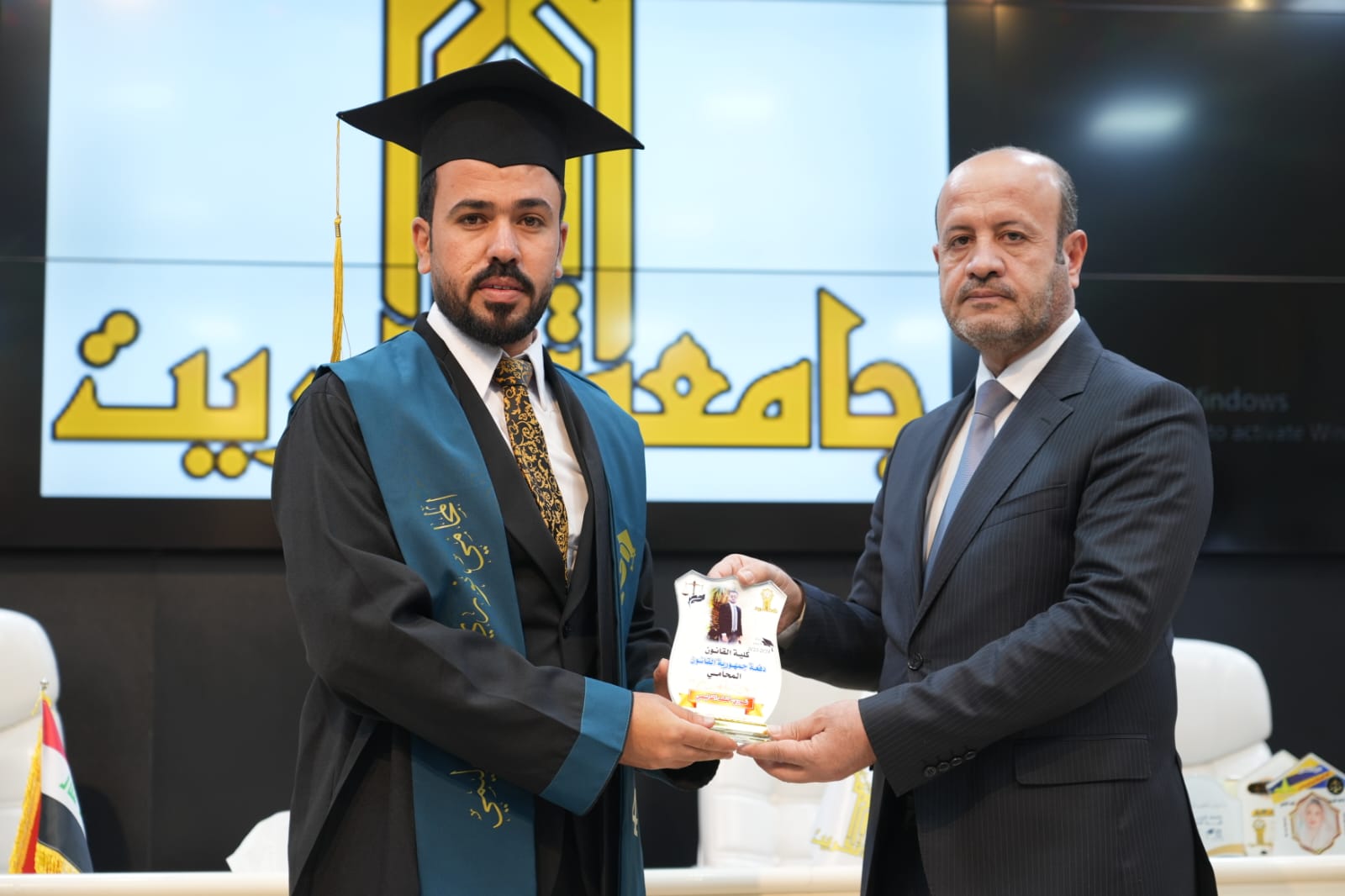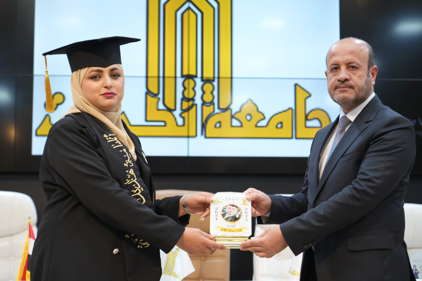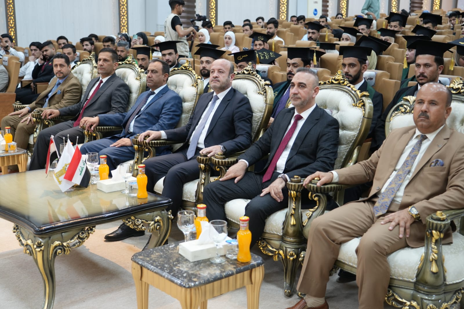 ثم القى ممثل الطلبة كلمة الطلبة الخريجيين والتي اثنى فيها على جهود الكلية والجامعة والاساتذة وماقدموه من الدعم الكامل والذي بدوره أدى الى خلق جيل مثقف وقادرٍ على حمل الرسالة وتحقيق غايتها في خدمة المجتمع.