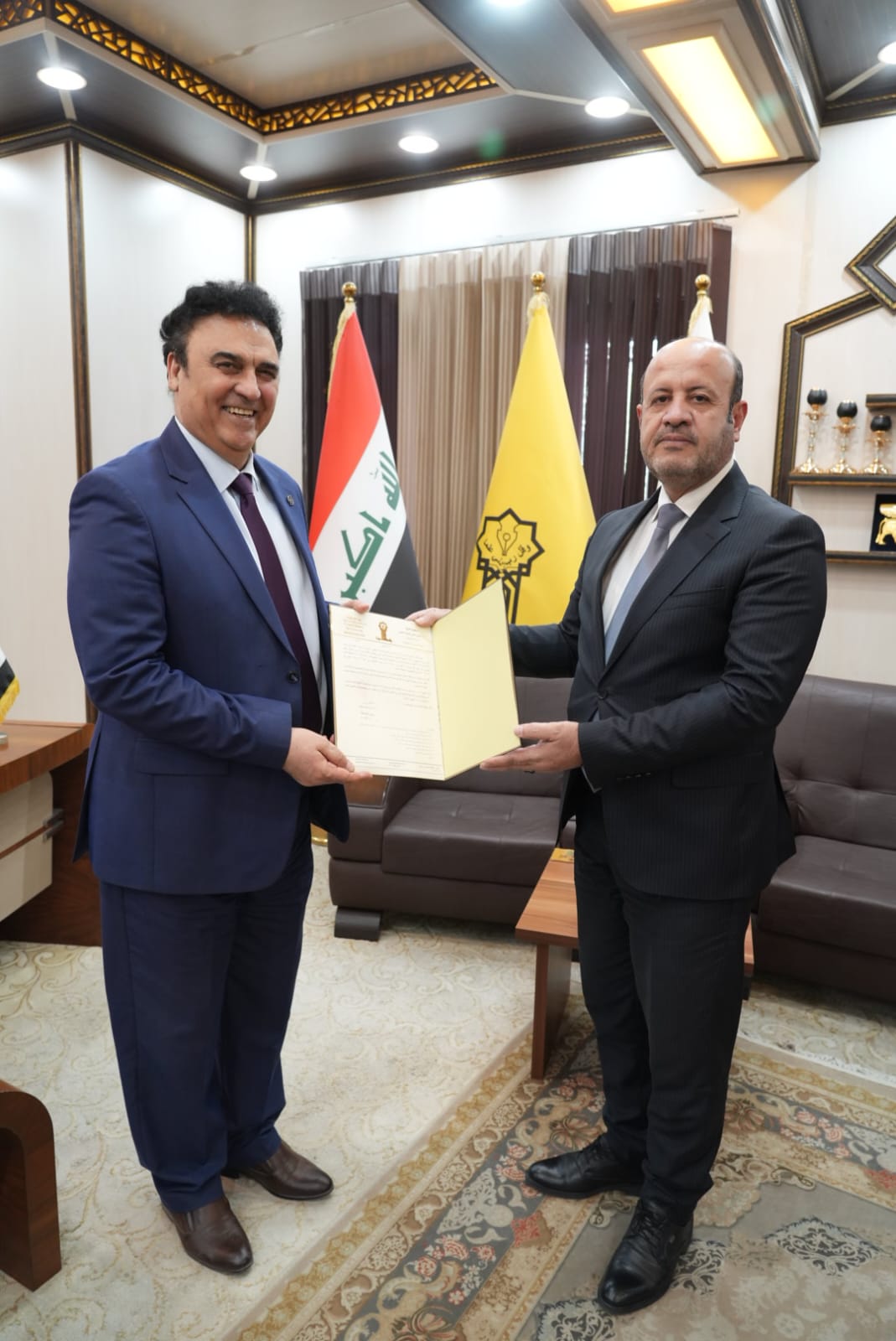 استقبل الاستاذ الدكتور وعد محمود رؤوف رئيس جامعة تكريت في مكتبه اليوم الثلاثاء ٨/ ١٠/ ٢٠٢٤ الاستاذ الدكتور سعد رمضان لطيف العميد الجديد لكلية الهندسة حيث تسلّم الأمر الوزاري الخاص بتعيينه بمنصب عميد كلية الهندسة بالاصالة خلفا للاستاذ الدكتور خالد حمود مضحي، وقدم رئيس الجامعة التهنئة للدكتور سعد رمضان، متمنيا له التوفيق والنجاح.