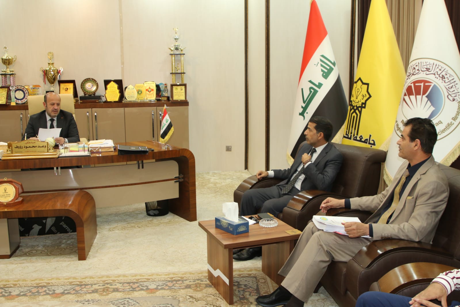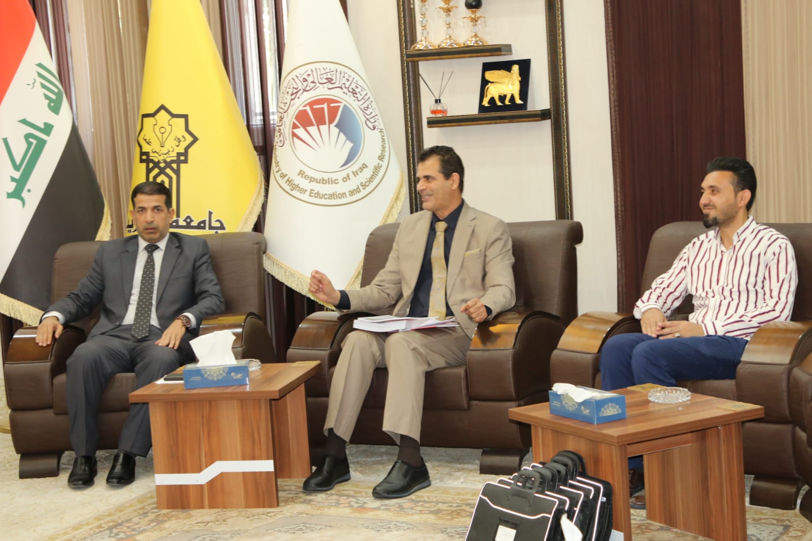 استقبل الاستاذ الدكتور وعد محمود رؤوف رئيس جامعة تكريت في مكتبة اليوم الاربعاء الاستاذ الدكتور انور فارس عبد عميد كلية العلوم الاسلامية والاستاذ الدكتور كفاح صابر رشيد رئيس المجلس الوطني للإعتماد البرامجي لكليات العلوم الاسلامية بمناسبة اكمال التقديم الاعتمادي لستة اقسام علمية .
