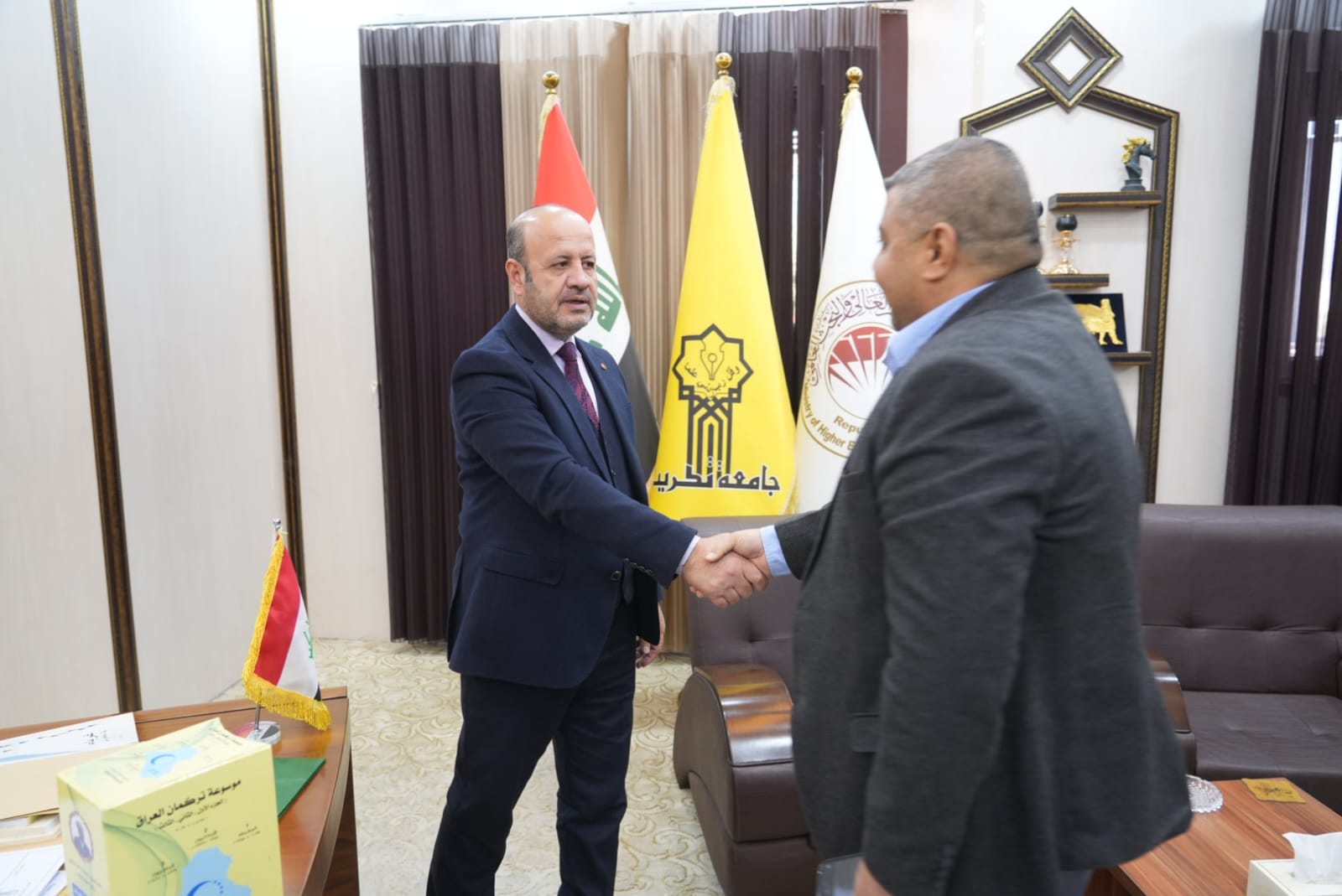 تلقّى الاستاذ الدكتور وعد محمود رؤوف رئيس جامعة تكريت عددٍ من المؤلفات العلمية والادبية التي قدّمها عدد من منتسبي الجامعة، وبارك السيد رئيس الجامعة جهودهم العلمية والادبية التي تأتي في إطار سعيهم الدؤوب في توثيق خبراتهم العلمية وافادة الوسط الجامعي منها، من جانبهما شكر الضيفان حفاوة الترحاب ومباركة السيد رئيس الجامعة لهما.