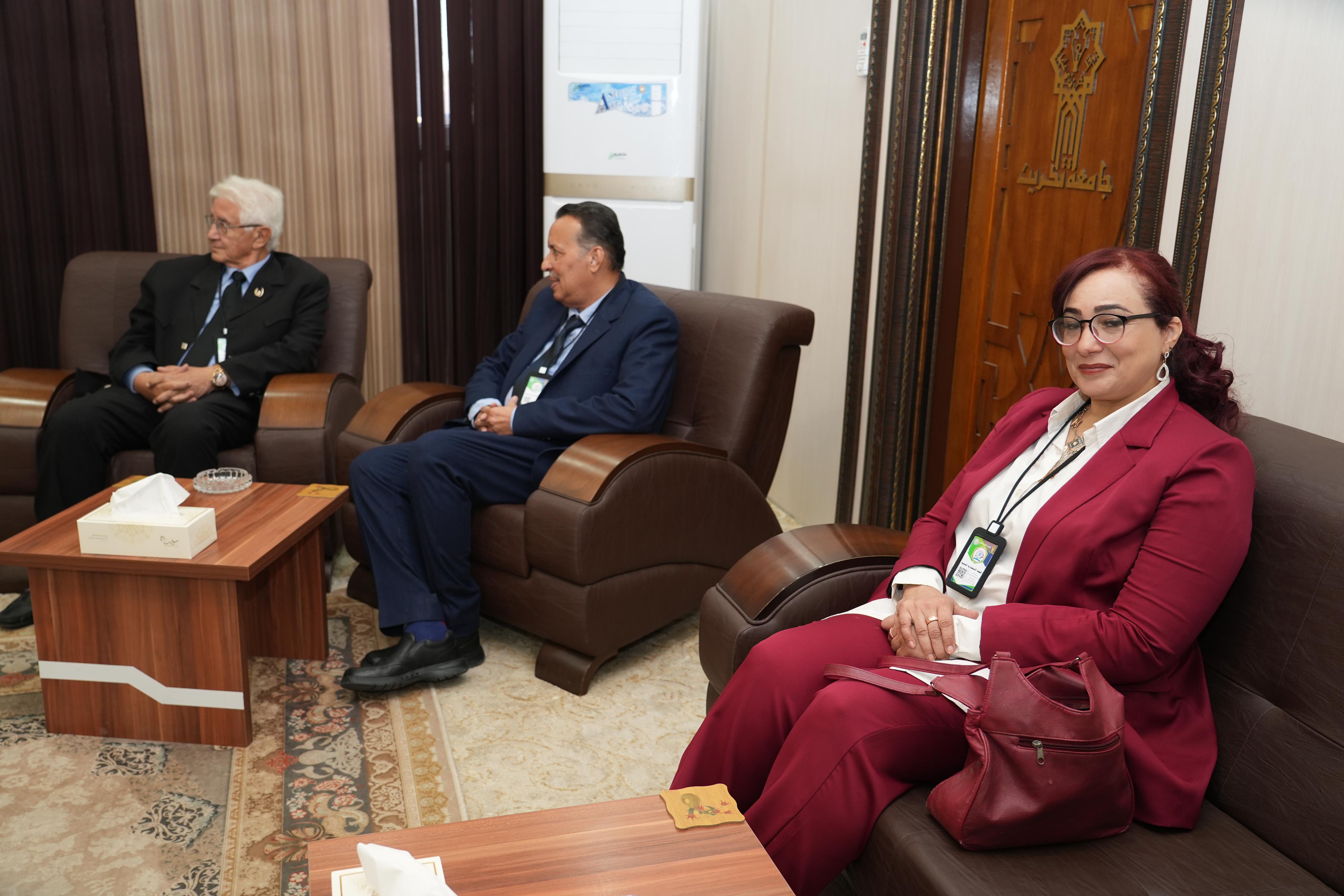 وهذا وقد استقبل الاستاذ الدكتور وعد محمود رؤوف رئيس الجامعة في مكتبه الباحثين المشاركين من الدول العربية وكرمهم بكتاب شكر وتقدير تثميناً لمشاركتهم الفاعلة من خلال بحوثهم القيمة.كما كرم رئيس الجامعة الباحثين والاكاديمين المشاركين من الجامعات العراقية بدرع .